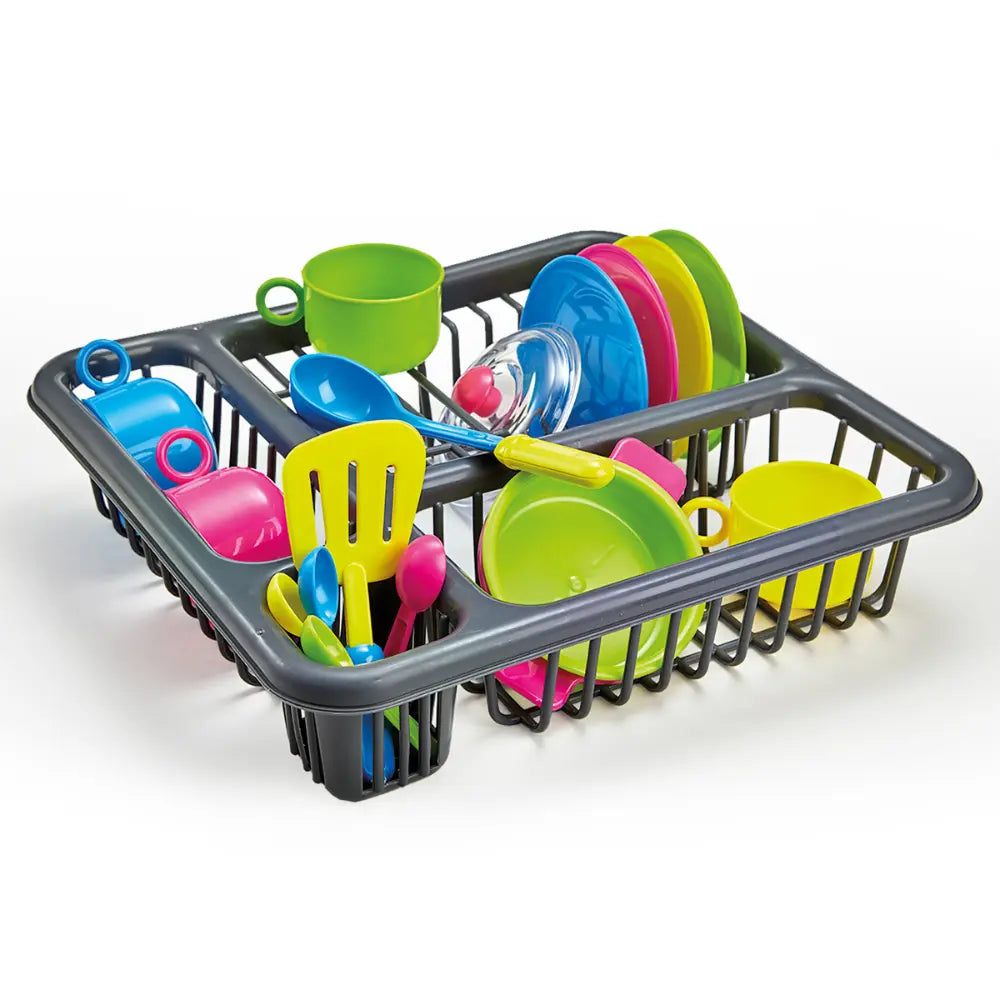 The Busy Me Lets Do The Dishes Playset is a 17-piece interactive role-play set designed to inspire children’s imagination and teach them about everyday kitchen tasks. Perfect for stocking any play kitchen, this colorful set includes utensils like a ladle, spatula, dish with lid, plates, cups, and a drying rack. Kids can enjoy cooking pretend meals, serving food, and then washing and drying the dishes just like at home. This engaging toy encourages imaginative play while helping develop social skills, fine motor skills, and a sense of responsibility through fun household role-playing. Suitable for children who enjoy pretend play and want to explore kitchen chores in a safe, playful environment.