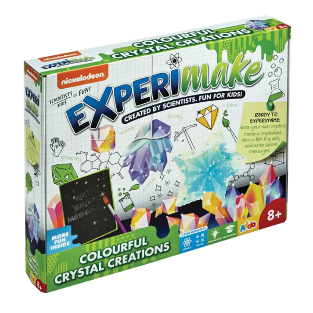 Calling all young scientists! The Nickelodeon Experimake Colourful Crystal Creations Kit lets children explore the fascinating world of chemistry and crystallisation through fun, hands-on experiments. Grow your own crystals, create a sparkling star or fish using the included moulds, and even write secret crystal messages to reveal later. With protective gloves, measuring cups, and all the key ingredients included, this all-in-one STEM kit offers hours of educational and creative play. Perfect for curious minds aged 8 and up, it’s a fantastic way to introduce children to science concepts while developing fine motor skills, problem-solving abilities, and patience.