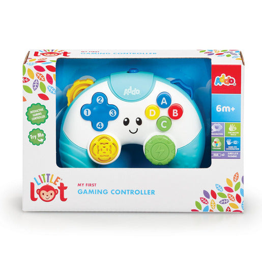 Introduce toddlers to interactive play with the Addo Little Lot My First Gaming Control! This battery-operated toy features buttons, sounds, and lights to engage little hands and spark imagination. Perfect for developing hand-eye coordination and fine motor skills, it provides a fun, safe way for young children to enjoy “gaming” play.