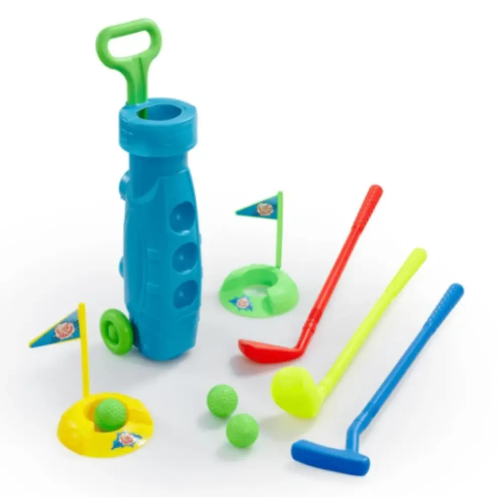 Get ready for a mini golf adventure with the Out and About Golf Caddy Set! Perfect for budding golfers aged 3 and up, this colourful set includes three clubs, three golf balls, two holes, and a convenient wheel caddy for easy transport. Ideal for indoor or outdoor play, children can set up their own mini golf course, practice their aim, and enjoy friendly competition with family and friends. Designed to encourage active play, the set helps develop hand-eye coordination, motor skills, and social interaction while keeping little ones engaged in fun, healthy outdoor activities. Durable and portable, this set ensures hours of golf-inspired fun at home, in the garden, or on family holidays.