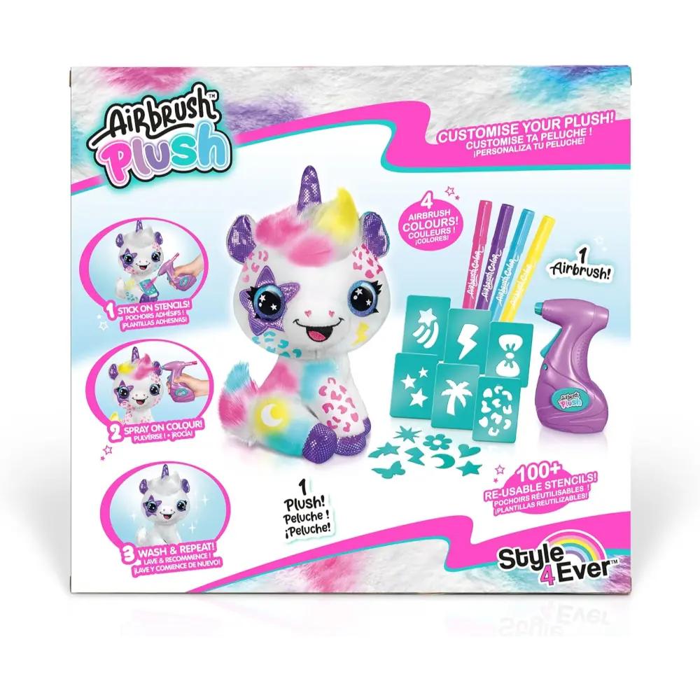 Give your silky soft pet a style make-over with the easy-to-use airbrush tool and 4 fun colored markers! Create your design free-hand or use the 120 stencil patterns provided. Wash off and create new styles for your pet, over and over again!