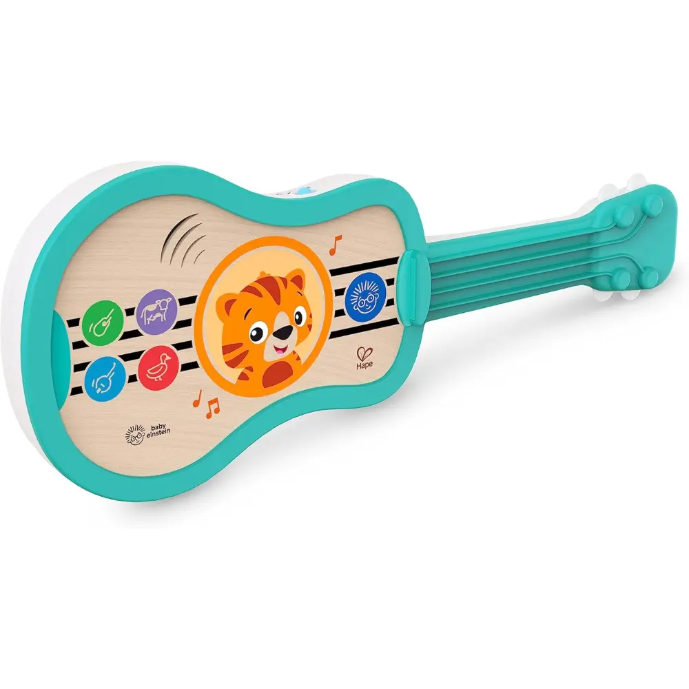 Let your little one strum up creativity with the Baby Einstein Sing & Strum Magic Touch Ukulele. With a simple tap, babies can play 6 familiar melodies or explore music with four fun sound options—ukulele, banjo, cow, and duck. This wooden ukulele toy introduces cause-and-effect learning while helping to build fine motor skills and inspire imagination. Designed with Baby Einstein’s signature Magic Touch technology, it’s perfect for musical exploration from 6 months and up.