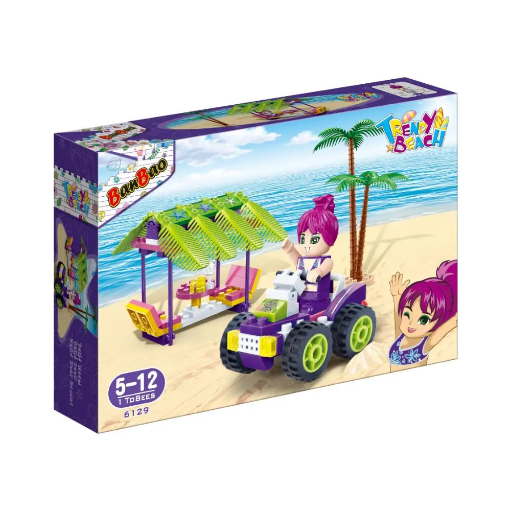 It's a beautiful day to go water skiing with all your friends.You can join the cruise, how cool! Look, there are dolphins swimming! Invite all your friends and see who can stay on the banana without falling into the water! Build this water fun set from the Beach Trendy series with the building blocks of BanBao! Trendy Beach series is a colorful educational building series for Girls. This play set comes with a quad bike, a shed and a tobees.