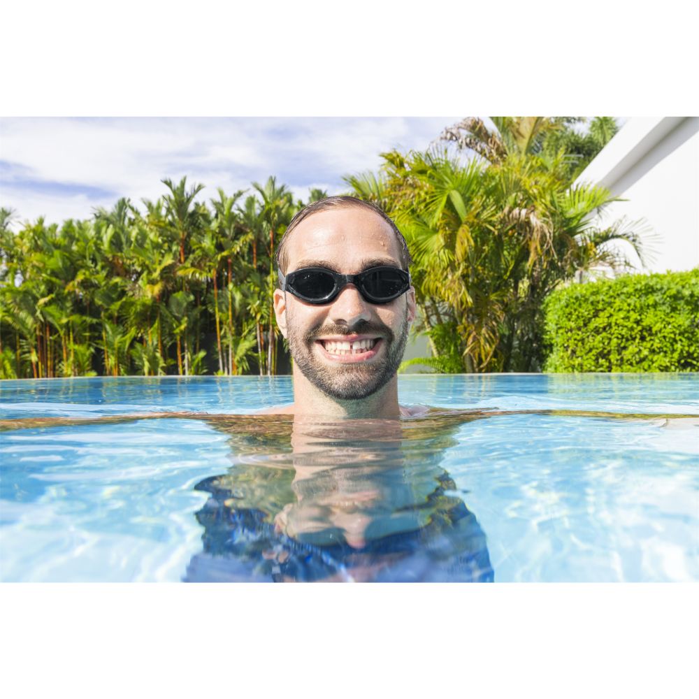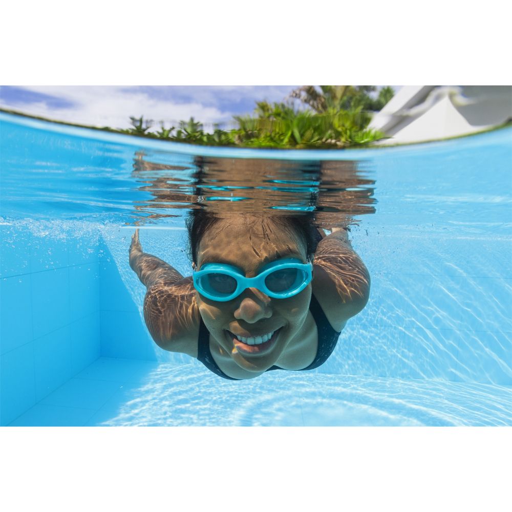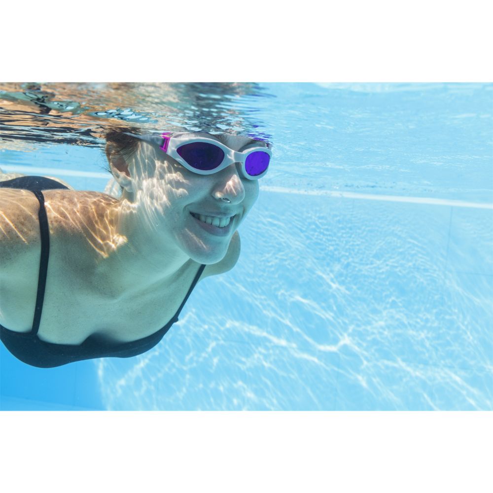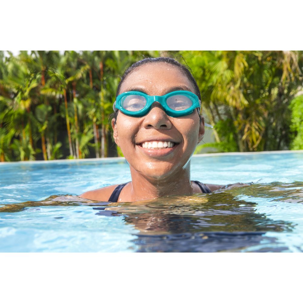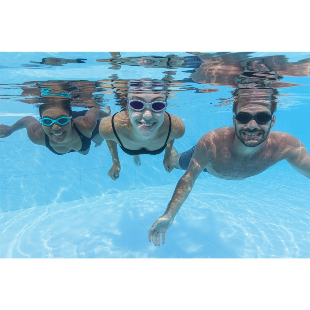 Take your underwater adventures to the next level with the Hydro-Swim IX-1400 Goggles by Bestway! Designed for swimmers aged 14 and up, these goggles combine comfort, protection, and performance. Soft, comfort-fit eyecups provide a secure seal to keep water out, while impact-resistant polycarbonate lenses feature UV protection and an anti-fog coating for crystal-clear vision underwater. The fully adjustable silicone head strap and comfortable nose bridge ensure a secure, custom fit. Available in 3 stylish colors, these 100% latex-free goggles are perfect for pool or ocean swims.