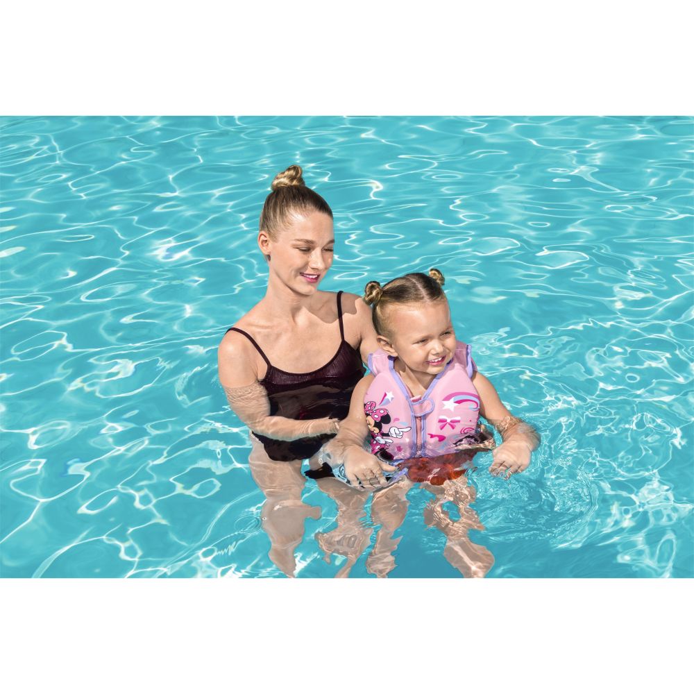 Make learning to swim fun and stylish with the Disney Junior® Mickey & Friends Minnie Mouse Fabric Kids Swim Vest! Designed for children aged 1 and up, this swim vest is part of the Bestway® Swim Safe step-by-step learning range, helping little swimmers master the basics of swimming and pool safety. The soft, knitted fabric with built-in foam pads provides both comfort and buoyancy, while the fun Minnie Mouse print adds a playful touch to every swim session.