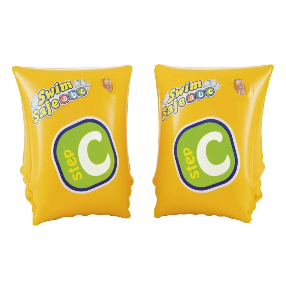 Designed to get kids moving and grooving and out of the house, the Swim Safeï؟½ Step A, B, Cï؟½ Armbands Step C puts the focus back on fun! The Bestwayï؟½ Swim Safeï؟½ Support Armbands Step C are especially designed to help both boys and girls master the basics of swimming and pool safety, part of the Bestwayï؟½ Swim Safeï؟½ step by step learning range. These childrens Swim Safeï؟½ Armbands are perfect for progressing from step C, such as a swimming vest or armbands, as they allow your child to rotate their arms and practice paddling with their hands and progress to ultimately swimming on their own. These Swim Safeï؟½ Armbands feature a double air chamber for added safety and buoyancy and are available in bright yellow with the Bestwayï؟½ Swim Safeï؟½ logo printed on them. Learning to swim has never been so safe and fun!