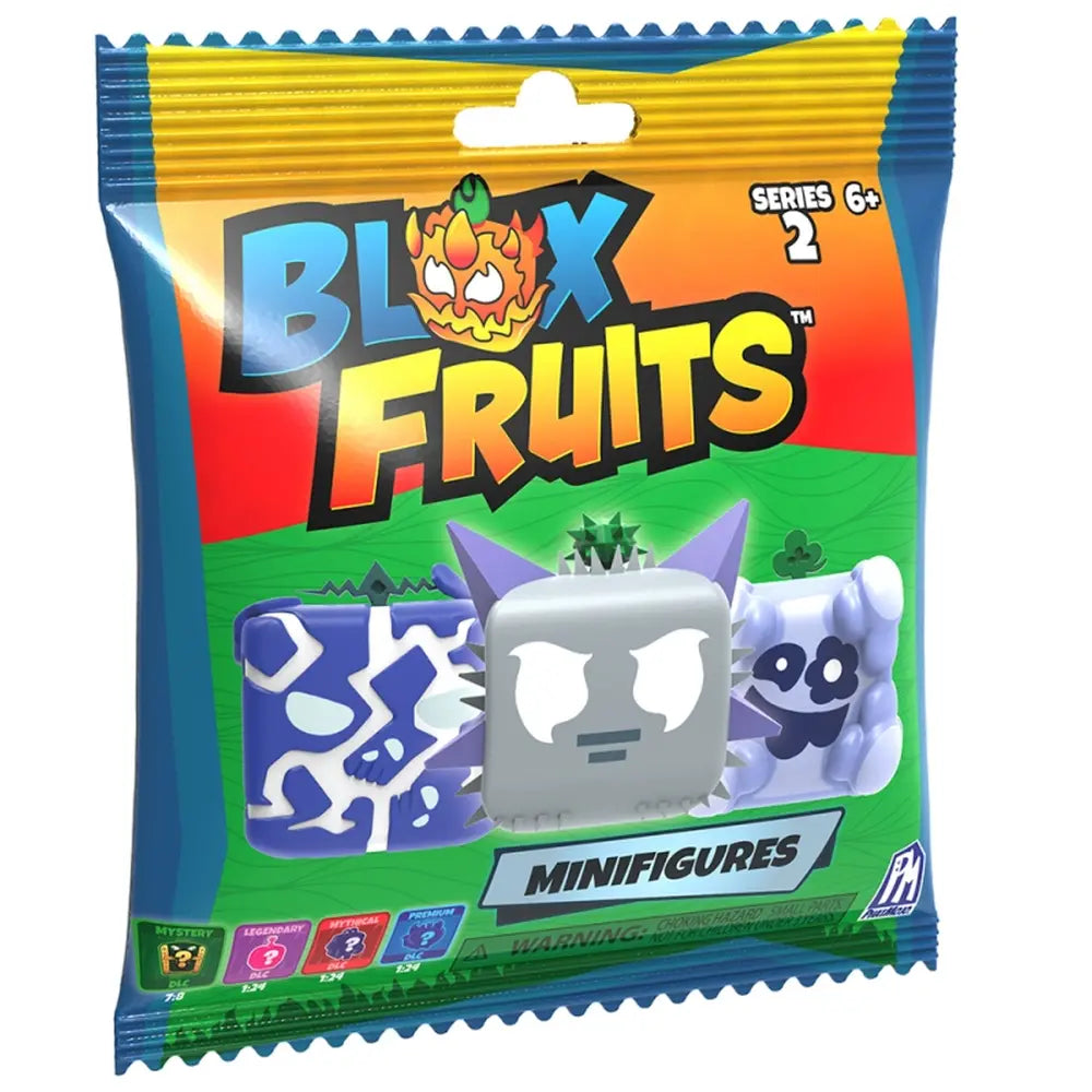 Blox Fruits, a thrilling anime-style action-adventure game, allows players to become master swordsmen by battling tough opponents and powerful bosses, and sailing the oceans in search of secret treasures. To match the game, Series 2 minifigures with a diameter of approximately 6.5 cm are now available in a pouch ï؟½ perfect for collectors and fans alike! From the hit game, comes the Blox Fruits, Series 2 Minifigures! Collect all of your favorite, magical fruits: from the uncommon Diamond, to rare Magma, and legendary Quake. Each bag comes with one Mystery Fruit, so you never know what youll get! Series 2 has 10 different Fruits to collect, including 3 rare chase Fruits! Remember, with Blox Fruits, you are what you eat!
