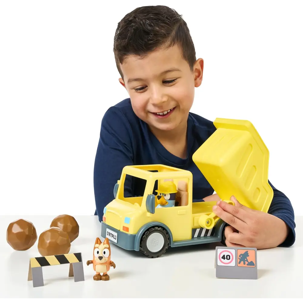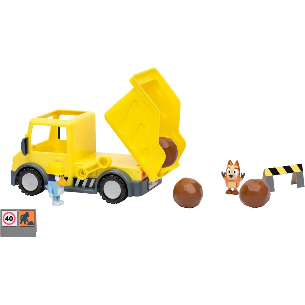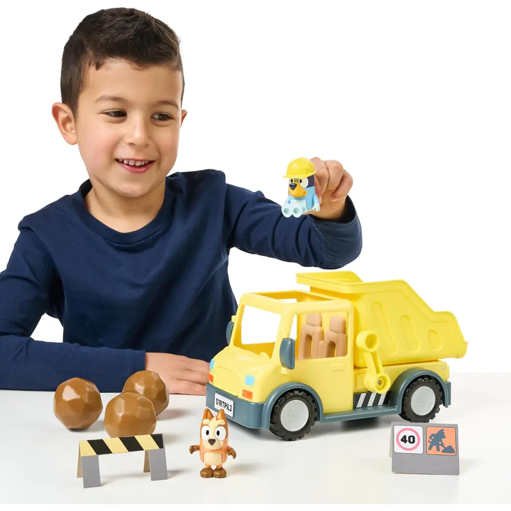 Go on a fun adventure with Bluey and Bingo with the Bluey Dump Truck Playset! Bluey wears her hard hat while Bingo enjoys some muddy fun. These exclusive figures are perfectly sized for preschool hands and articulated so they can sit in the cabin of the dump truck.
