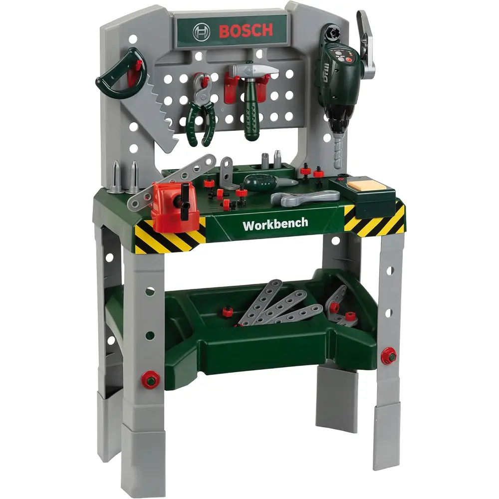 Every little craftsman needs the perfect workbench, and the Height Adjustable Bosch Work Bench is just the set for young builders with big creativity! Designed to inspire imagination and practical skills, this realistic workshop includes fun sound effects for a mill, belt sander, and background workshop noises to make playtime even more exciting. Equipped with a wide selection of tools such as a power drill, hammer, vice, saw, wrench, and plenty of screws, nuts, bolts, and planks, kids can enjoy endless hands-on building fun. With its adjustable height, this Bosch work bench grows with your child, offering long-lasting play and learning opportunities.
