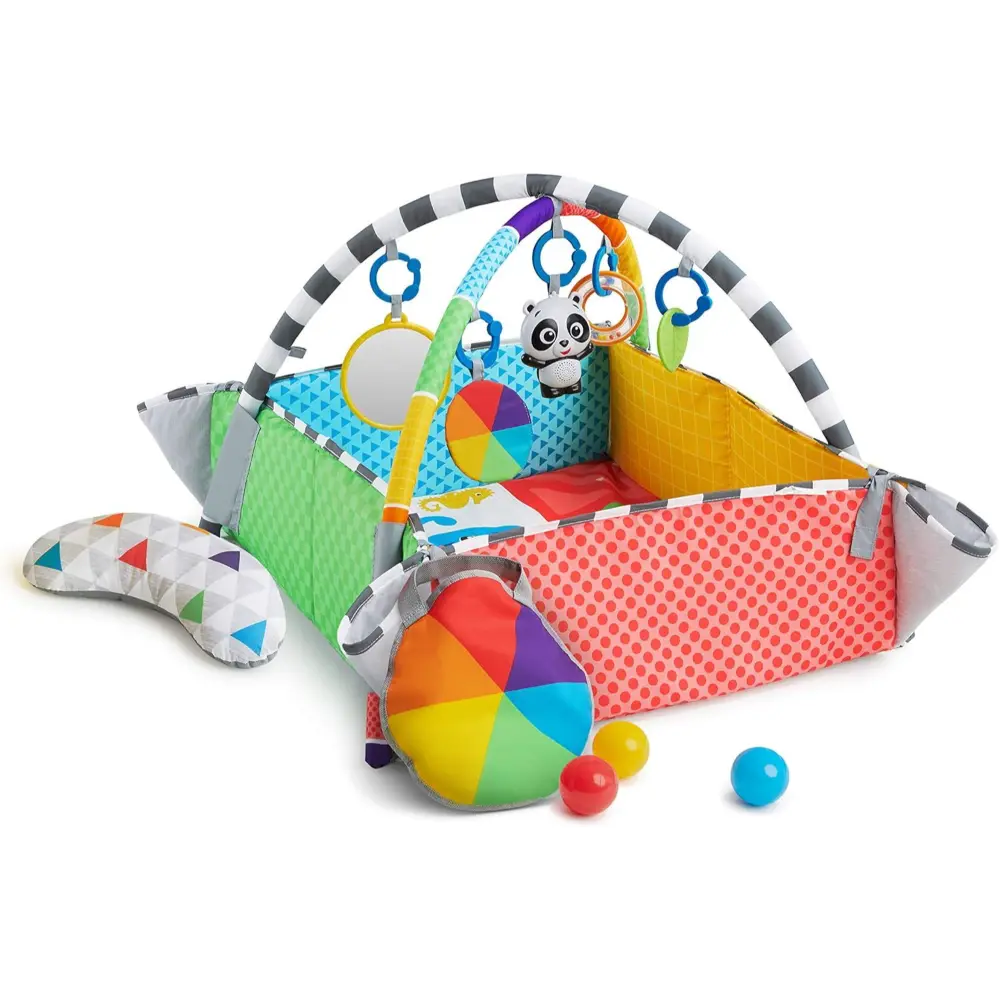 Bring color, music, and endless play to your baby’s day with the Baby Einstein Patch 5-in-1 Color Playspace Activity Gym & Ball Pit. Designed to grow with your little one from newborn to toddler years, this versatile activity gym transforms from tummy time to ball pit fun. Bright colors, playful patterns, and a high-contrast panda toy with 20+ minutes of melodies keep your baby entertained, while 5 detachable toys and a supportive tummy time pillow encourage sensory exploration and motor skill development. With colorful balls and a convenient storage bag included, it’s a perfect blend of creativity, learning, and fun.