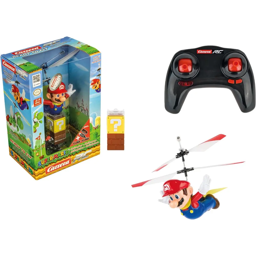 Children and adults will have a blast flying Super Mario up, down, and all around. This fun flying toy is suitable to fly indoors in your living room, bedroom, or other play area. Each full charge provides up to 5 minutes of flight time and with only approx. 30 minutes required for charging, you'll spend less time between flights. Flying Cape Mario is Officially Licensed and part of the Carrera RC Mario Kart family of remote control toys. This fun flying drone toy comes packed in a colorful reta
