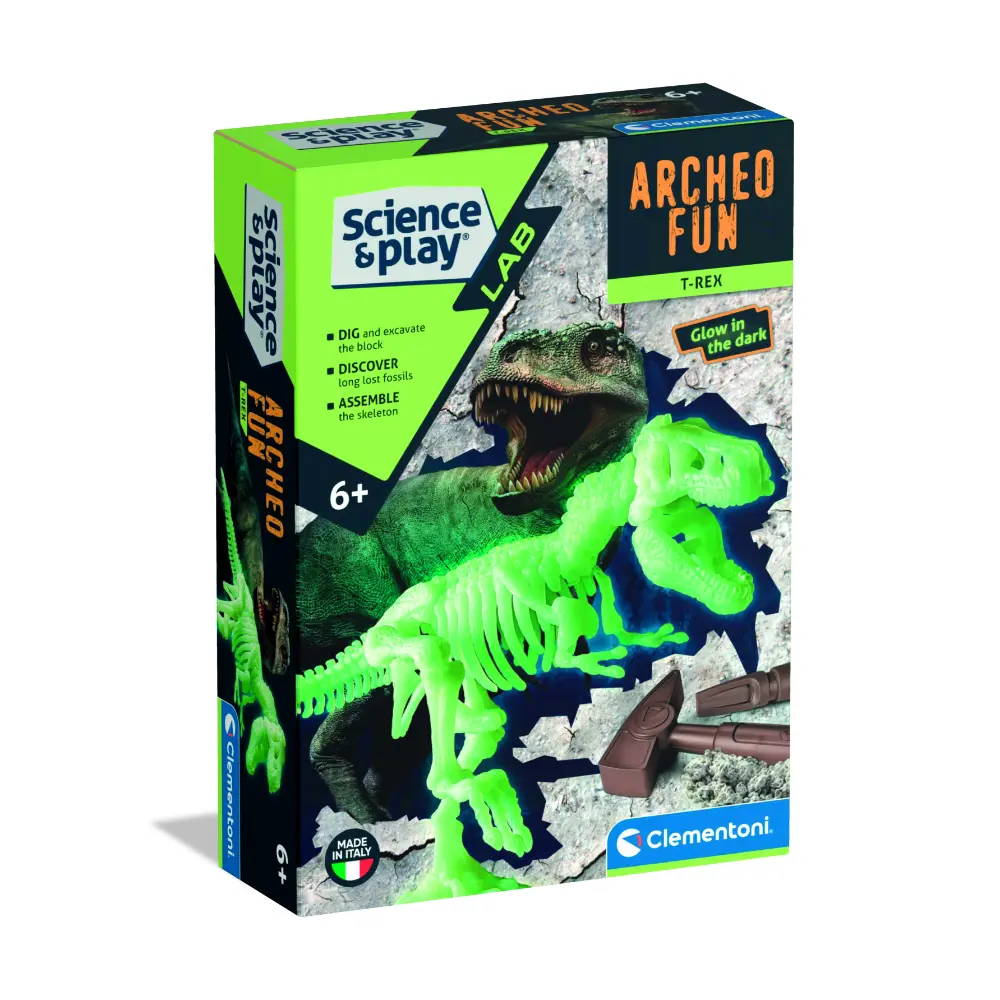 Dig into the brick and discover the glow-in-the-dark skeleton of the legendary T-Rex! Relive the past thanks to augmented reality! With the free app, simply frame the cards in the kit with your tablet or smartphone to bring the legendary creature back to life. Have fun taking photos and personalise them, take lots of videos and share them all! The package includes a hammer and chisel, so you can become a true palaeontologist.