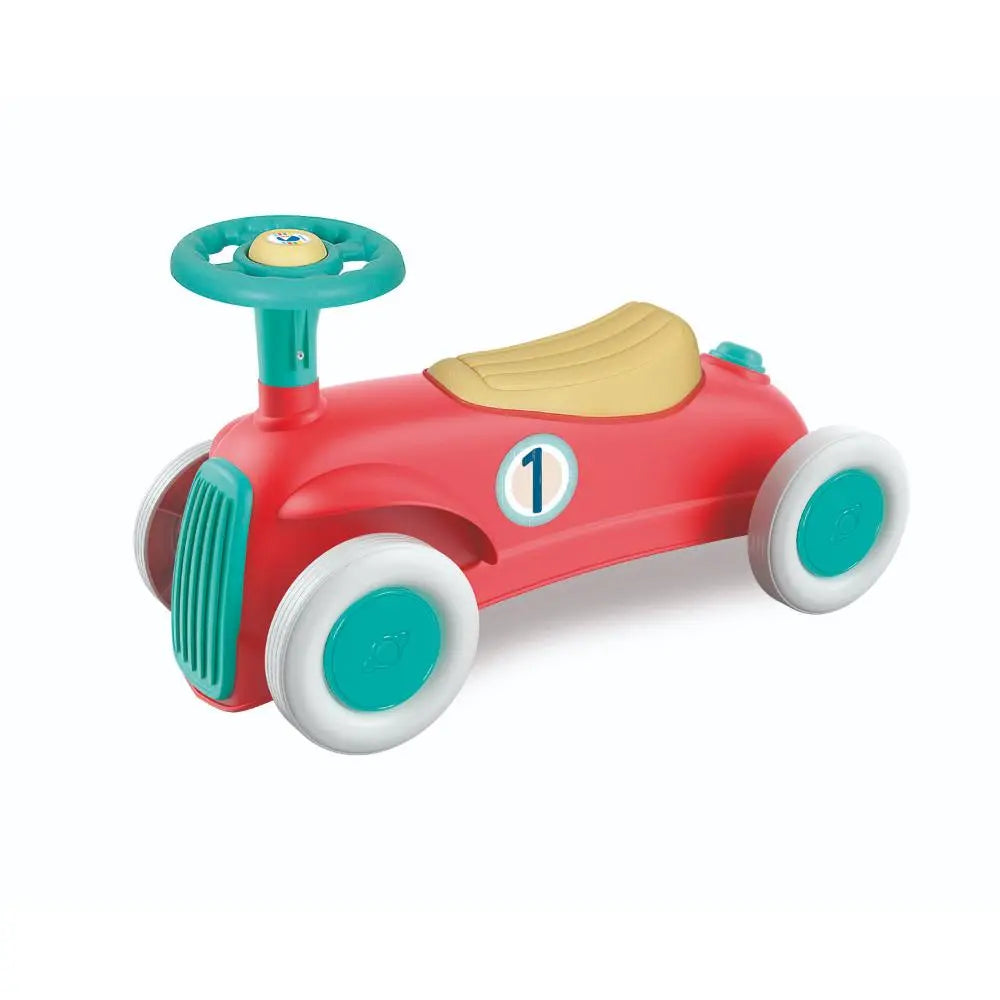 A toy car made of 100% recycled material with a sophisticated design and vintage style to drive towards new and fantastic adventures! Steered wheels to facilitate driving and a squeaking horn to capture children’s attention and stimulate their curiosity, hearing and understanding of cause and effect relations. A ride on car designed to develop children’s motor skills, coordination and spatial perception.