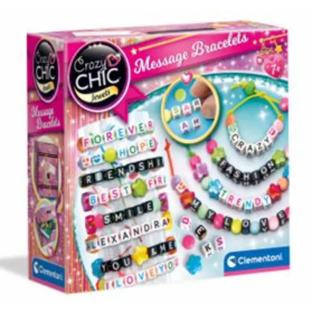 Bracelets in bright and lively colours, which you can write your name or favourite words or messages on, allowing full expression of creativity and unique style. This kit gives little girls the freedom to create their own favourite jewellery. With a good dose of manual skills, any little girl can create original pieces to wear with pride or swap with friends! A bracelet can seal a friendship or become a new trend, and nothing is more fun for little girls that showing off a new bracelet that fits their current mood. The container is ideal to store all of the different components in one place and easily find the items required each time you want to write a new word or choose different colours. The play set contains different alphabets: in black and white, with white letters on black background and coloured on a white background. The choice of colours of the components has been carefully selected based on current fashion trends, in order to inspire little girls. The pack transforms into a container to store creations and an accessory holder for unused beads, ensuring that none are lost and allowing creations to be made anywhere. This play set prompts little girls to experiment with different combinations of jewellery with creativity and imagination, also developing manual skills.