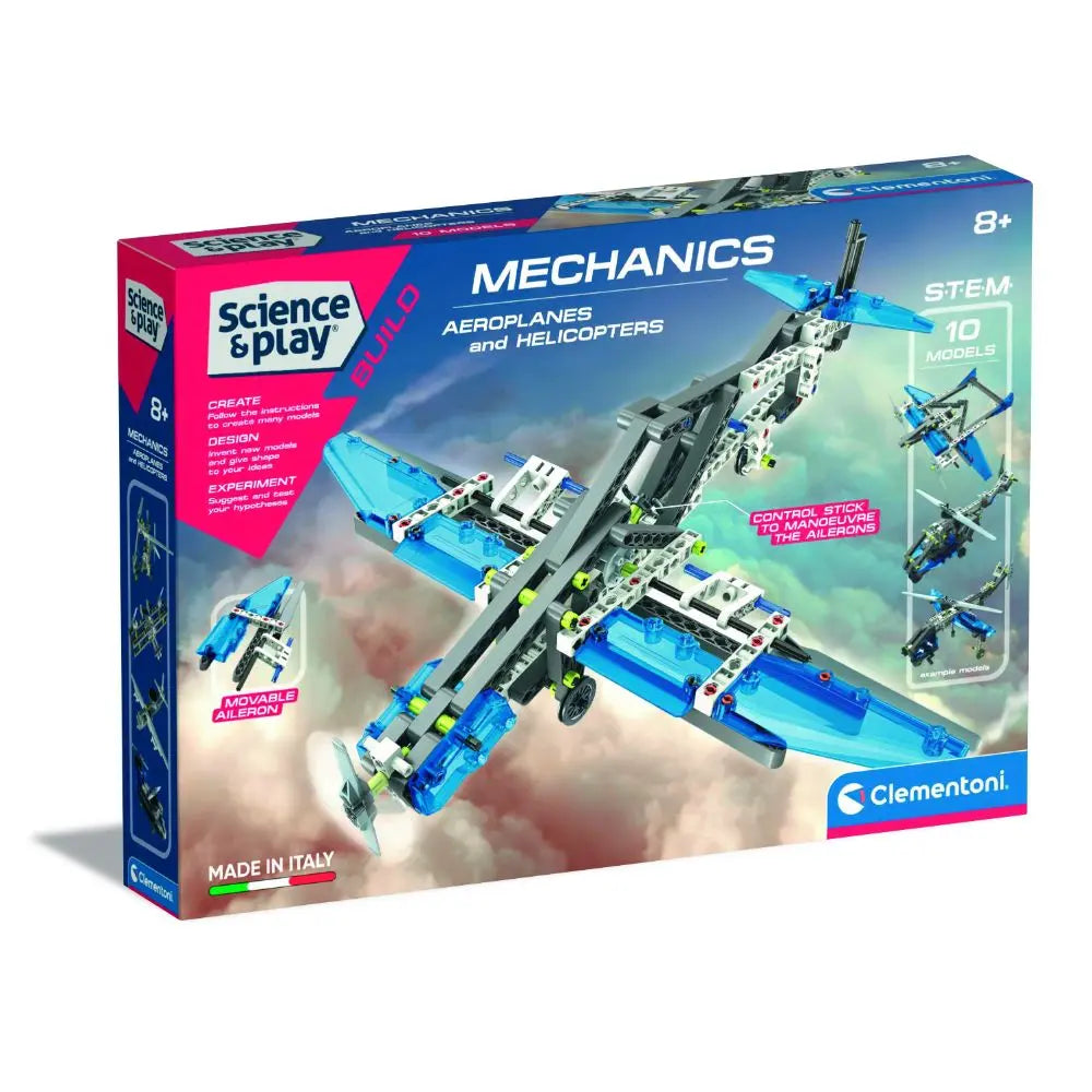 Discover the secrets of aerodynamics with Mechanics Lab - Aeroplanes and Helicopters! A scientific kit for discovering and experimenting with the mechanics of flight. With 10 models and 200 components to assemble, including: rods for assembling the nacelles, panels, propellers, cogs, pulleys and universal joints. The illustrated manual will show your child how to assemble the various models... for endless hours of fun!