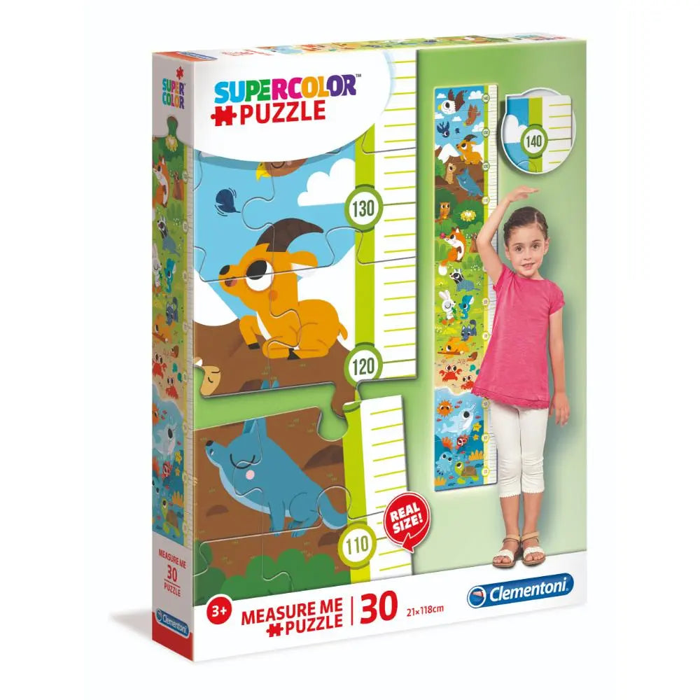 Puzzle of 30 Maxi pieces measuring 21 x 118 cm. The Puzzle Measure Me to hang on the wall becomes a yardstick for growth. Write down the dates and attach photos to follow the baby's development. Inside the box you will find the glue and clips to hang the photos. Entirely dedicated to children, it consists of images depicting the characters most loved by children. Engaging images with bright and sparkling colors to help them develop observation skills, logic and dexterity. The quality of the materials and the exclusive printing technique guarantee images that are always beautiful, lively and bright, for a game that never ends.