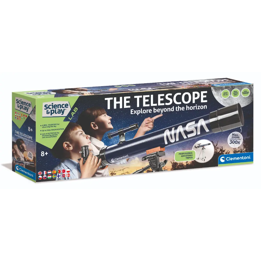 An actual NASA telescope for observing the moon, the stars and the night sky! Comes with a 50 mm lens and interchangeable eyepieces for different magnification effects! The telescope has a tripod that can be extended up to 130 cm! Perfect for every situation!The telescope has a tripod that can be extended up to 130 cm! The illustrated manual helps the child to understand astronomy principles. The ideal game for introducing children to astronomy in an easy and fun way.