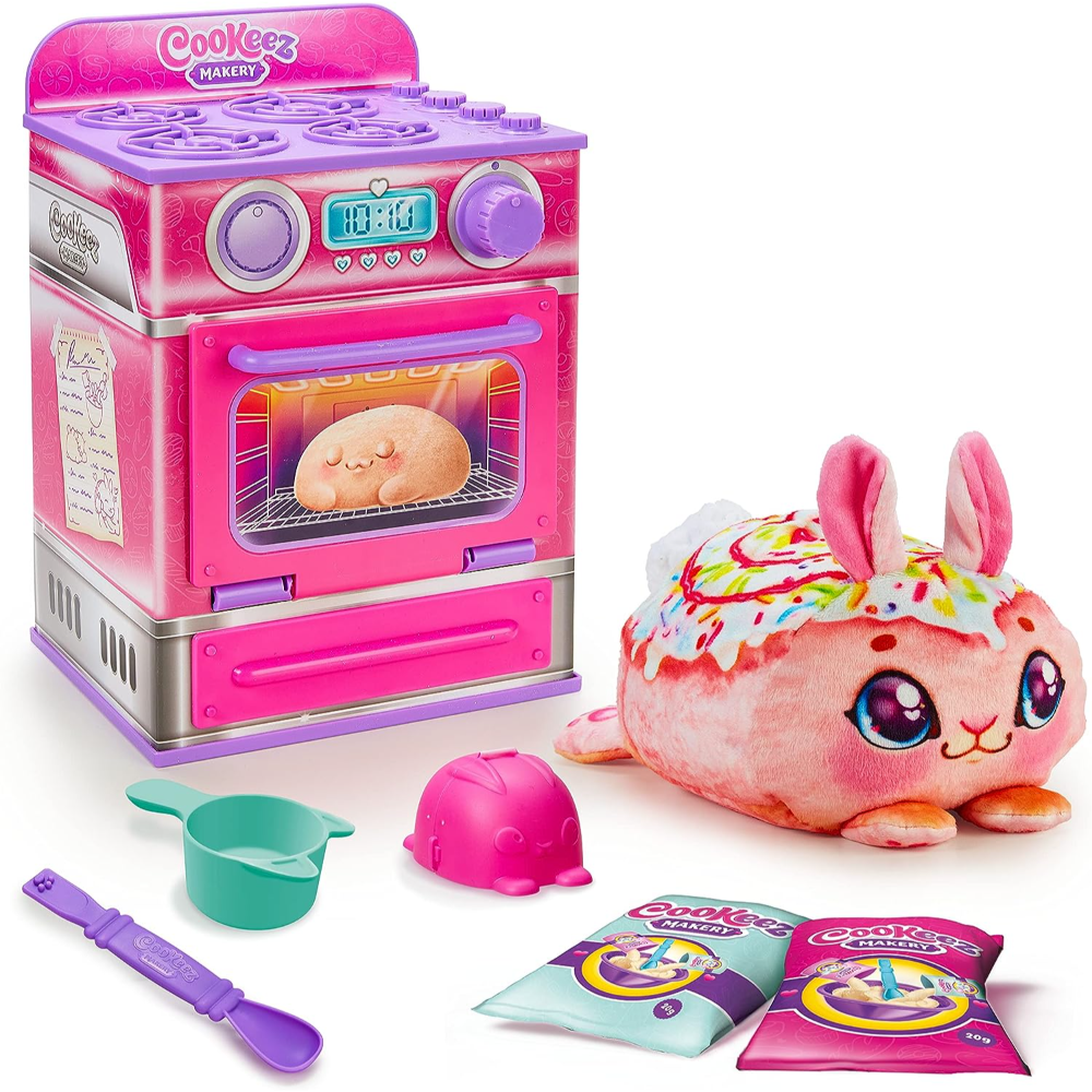 Cookeez Makery will amaze you and your child when they bake a surprise plush best friend! As they open the oven door they will discover their own warm and scented interactive plush friend in the shape of a yummy smelling baked treat! The Cookeez Makery Cinnamon Treatz Oven comes with everything children need to mix and make a Surprise Bake! There's a chance of making a puppy, kitten or bunny! First they mix the ingredients. Then using the dough mold and included tools, kids can add adorable features. Then pop it in the oven and shut the door. In 90 seconds, kids will hear a "ding". It's time to open the oven and meet a new friend. Wow! A warm and deliciously scented plush toy that's interactive to play with! Which Cinnamon Treatz will they make? There are 3 to create - Cinnamon Pooch, Fondant Feline and Strawberry Swirl! Children can repeat the process again and again!