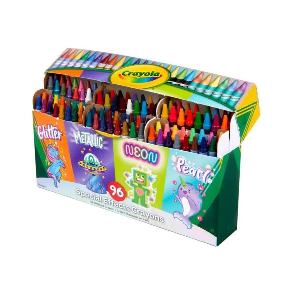 This big set of Crayola Specialty Crayons features 24 each of Neon, Metallic, Pearlescent, and Glitter Crayons, 96 crayons in all! Perfect coloring supplies for coloring books, arts and crafts or other creative fun! Like all Crayola Crayons, they are double wrapped for extra strength.