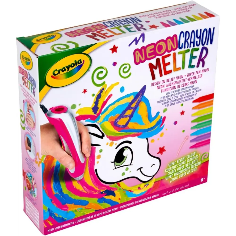 Unlock a whole new world of creativity with the Crayola Crayon Melter! This innovative crafting tool melts crayons into vibrant, liquefied designs that dry quickly and cool to the touch, perfect for decorating on a variety of surfaces including thick paper, cardboard, glass, wood, and more. The sleek, compact unit features a safe, low-heat tip that’s ideal for both kids and adults. Included are 8 neon crayons, cardstock sheets, a wrapper ripper tool, and a storage base. Let your imagination run wild with textured, dimensional art, gift making, and DIY projects using this unique melter. Note: Works best with Crayola regular, washable, or metallic crayons (glitter crayons not compatible).