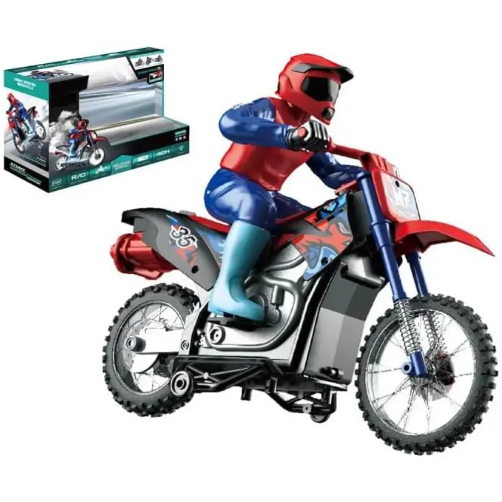 Crazon 2.4G scale 1:10 smoking motorcycle remote control drift spraying motorbike high speed stunt motorcycle toy for kids.