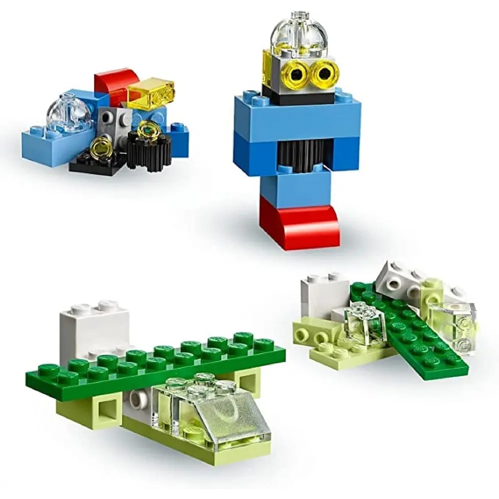 - Includes colourful bricks, eyes, wheels and assorted shapes