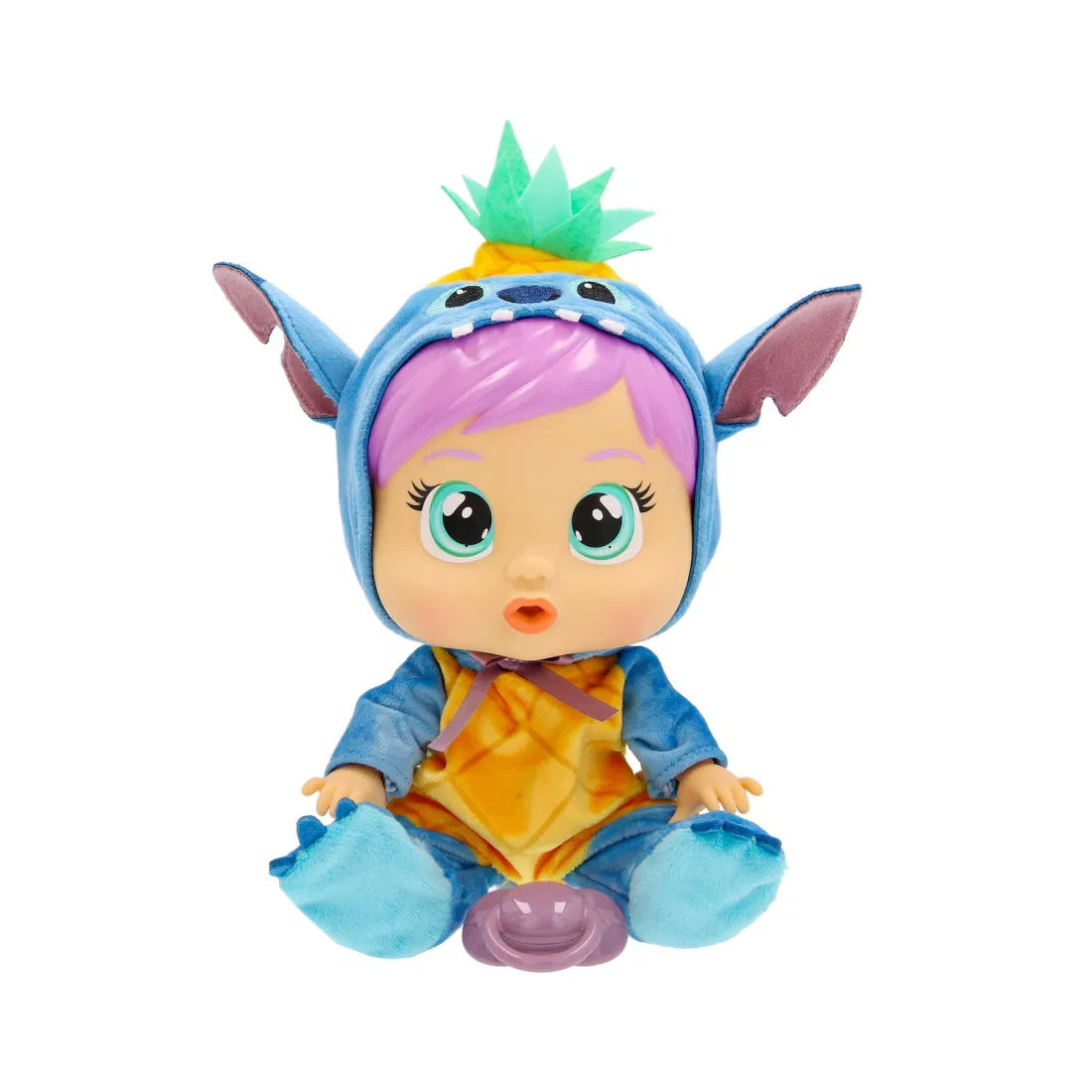 Fill Stitch with water and gently press his head to make him cry real tears, just like a real baby. Calm him with his matching pacifier or pretend to feed him with his bottle to keep him happy. With over 10 realistic baby sounds, including coos, giggles, and whimpers, plus articulated arms and legs for posing, Stitch brings the Cry Babies experience to life in an unforgettable way.