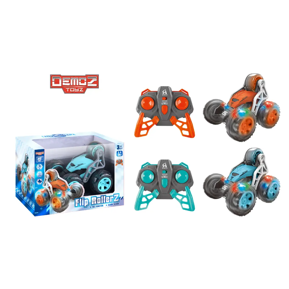 The Flip RollerZ brings non-stop action to every playtime! This exciting remote-controlled stunt vehicle is built for jaw-dropping 360-degree flips, spins, and dynamic stunts. With its dual-sided body and innovative wheel design, it keeps moving in any direction—even after flipping. Bright LED lights add a vibrant touch, making it just as fun to play with in low light. Perfect for kids aged 3+, the Flip RollerZ promises hours of exciting fun.