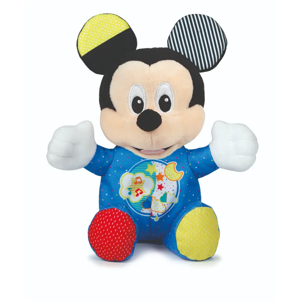 Plush Toy Lightning Baby Mickey Sweet Mickey is a companion during a nap for all children. Thanks to the illuminated belly, the toy calms the child and gives a pleasant feeling of security throughout the night. The melodies calm the child and rock to sleep. Using a handy clip and belt, the toy can be attached to the bed and taken in any place, becoming an inseparable companion.