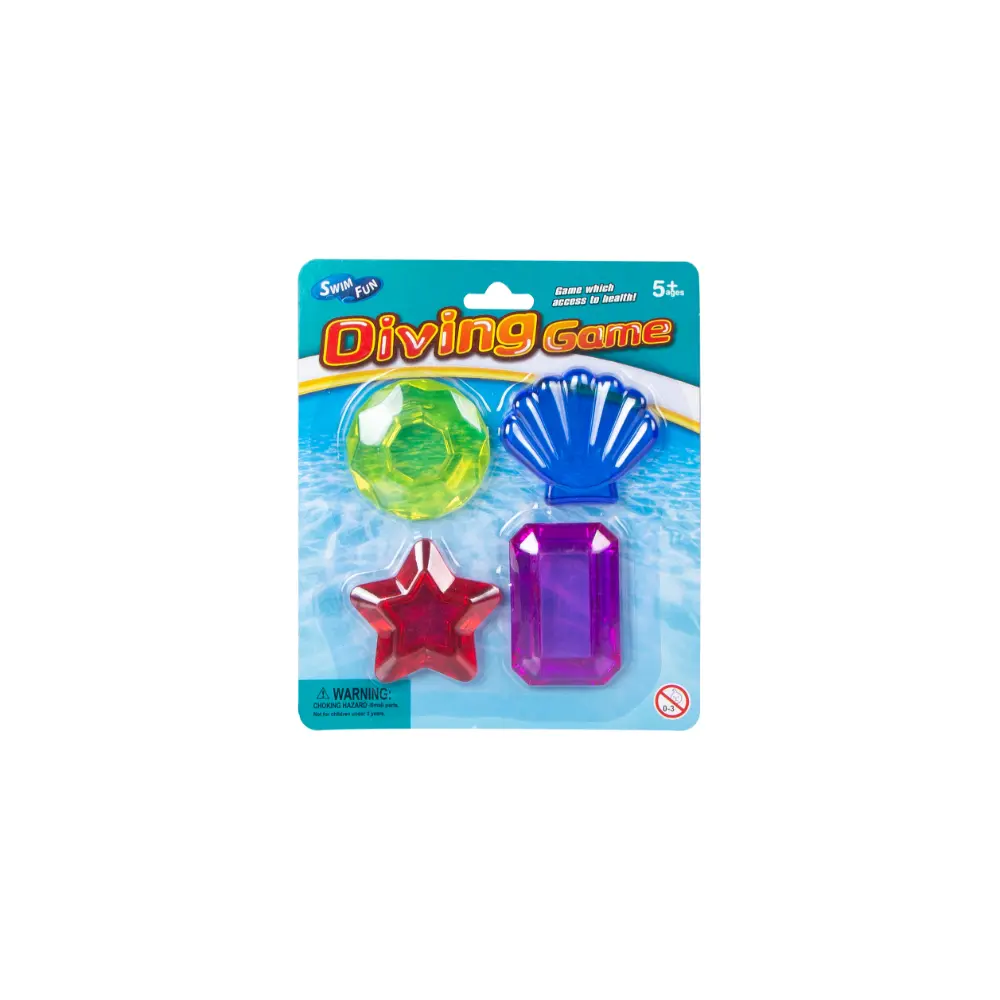 Add a splash of excitement to pool time with the Diving Game Crystal Gems! This fun game encourages children to dive and collect colorful gems from the pool, making swimming both active and engaging. Each pack includes 4 gems in different shapes and vibrant colors, perfect for friendly competitions to see who can collect the most.