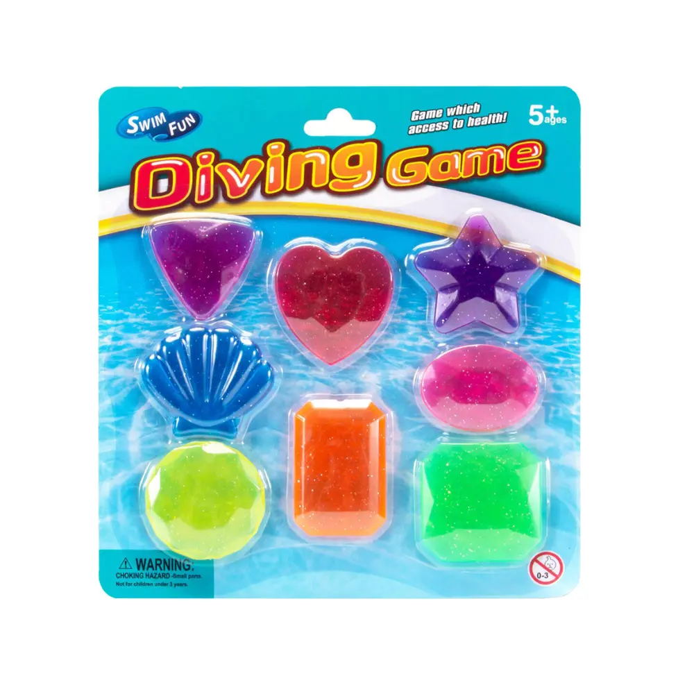 Make pool time more fun and exciting with the Diving Game crystal gems because it will encourage your child to dive around the pool to catch them all. Imagine how happy your child will be when they catch all the gems while actively playing in the water. Challenge your friends to see who can collect the most! Each pack includes 8 gems of different shapes and colors.