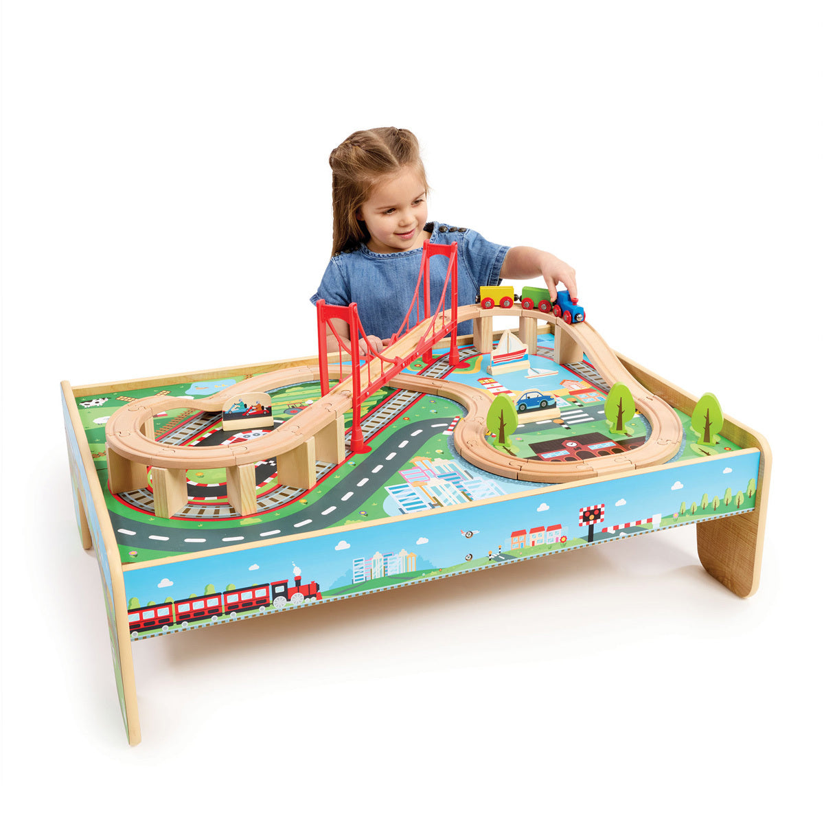 Bring the excitement of the rails to playtime with the ELC Classic Wood Train Table! This sturdy wooden table features a detailed track layout, bridges, and accessories, providing a realistic and engaging train play experience. Perfect for imaginative play, it encourages hand-eye coordination, spatial awareness, and creative storytelling. Designed for young train enthusiasts, it offers hours of fun, solo or with friends.