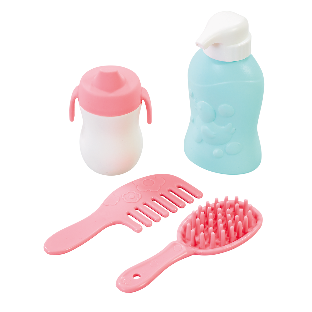 - Complete Pretend-Play Set – Includes changing mat, nappies, lotion, wipes box, powder pot, hairbrush, comb, and feeding accessories
