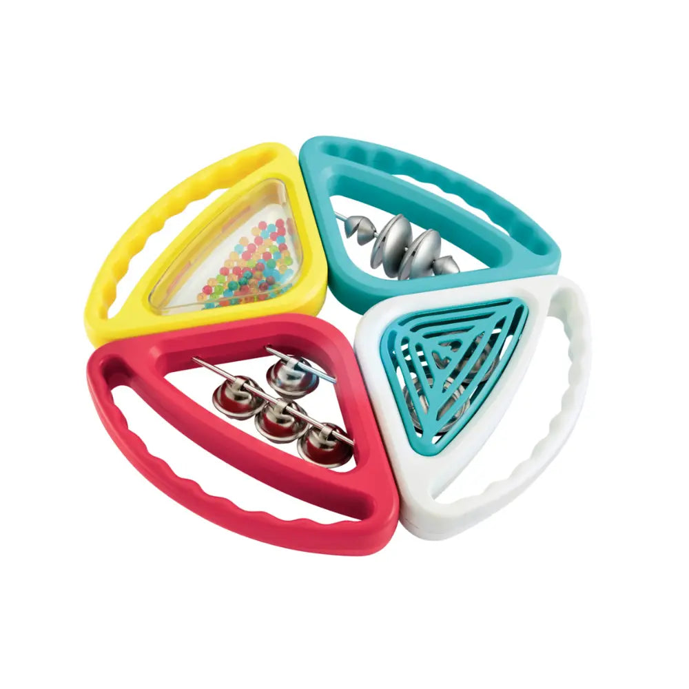 Let us Make Some Music! The Early Learning Centre Music Maker is a vibrant toy that introduces the world of sound and rhythm. This set includes four different shakers, each creating a unique noise: jingling bells, clacking cymbals, chiming bells, and rattling beads. The baby shaker toy has colourful, chunky frames, perfect for little hands to grip. This early learning centre music maker develops a love for music and rhythm. It is a perfect addition to any collection of early learning toys.