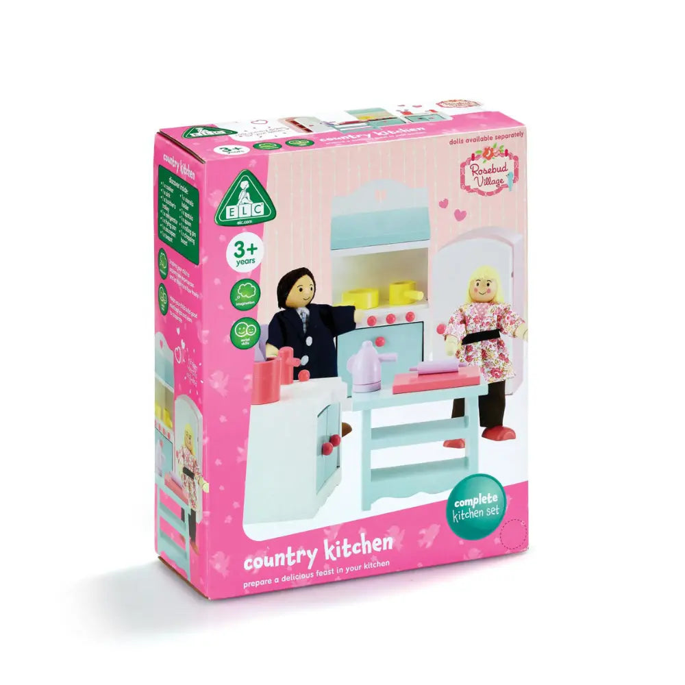 Cook up a storm with this delightful Early Learning Centre Rosebud Country Kitchen. The perfect addition to roleplay sets, this Country Kitchen is great for imagination-sparking playtime with friends or alone. Make some tasty dishes for your teddies and dolls; what you cook is up to you! This sweet set includes a cooker, sink, and fridge, as well as accessories such as a frying pan, spatula, teapot, chopping board, rolling pin, and utensils. When you prepare a delicious feast in your kitchen,