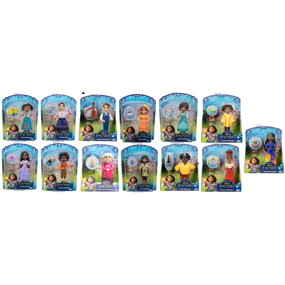 Walt Disney Animation Studioï؟½s 60th feature, Encanto, tells the tale of an extraordinary family, the Madrigals, who live hidden in the mountains of Colombia, in a magical house, in a vibrant town, in a wondrous, charmed place called an ï؟½Encantoï؟½. The magic of the Encanto has blessed every child in the family with a unique gift from super strength to the power to healï؟½every child except one, Mirabel. But when she discovers that the magic surrounding the Encanto is in danger, Mirabel decides that she, the only ordinary Madrigal, might just be her exceptional familyï؟½s last hope. Step into the magical world of Disneyï؟½s Encanto with these Madrigal family small dolls! Each doll is modeled after a different member of the Madrigals, and includes an accessory piece that represents their characterï؟½s magical gift. Articulated at the shoulders and hips, you can pose and play out your favorite Encanto scenes!