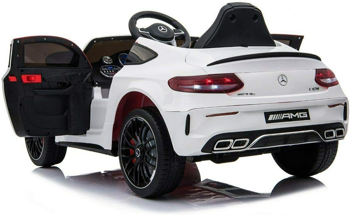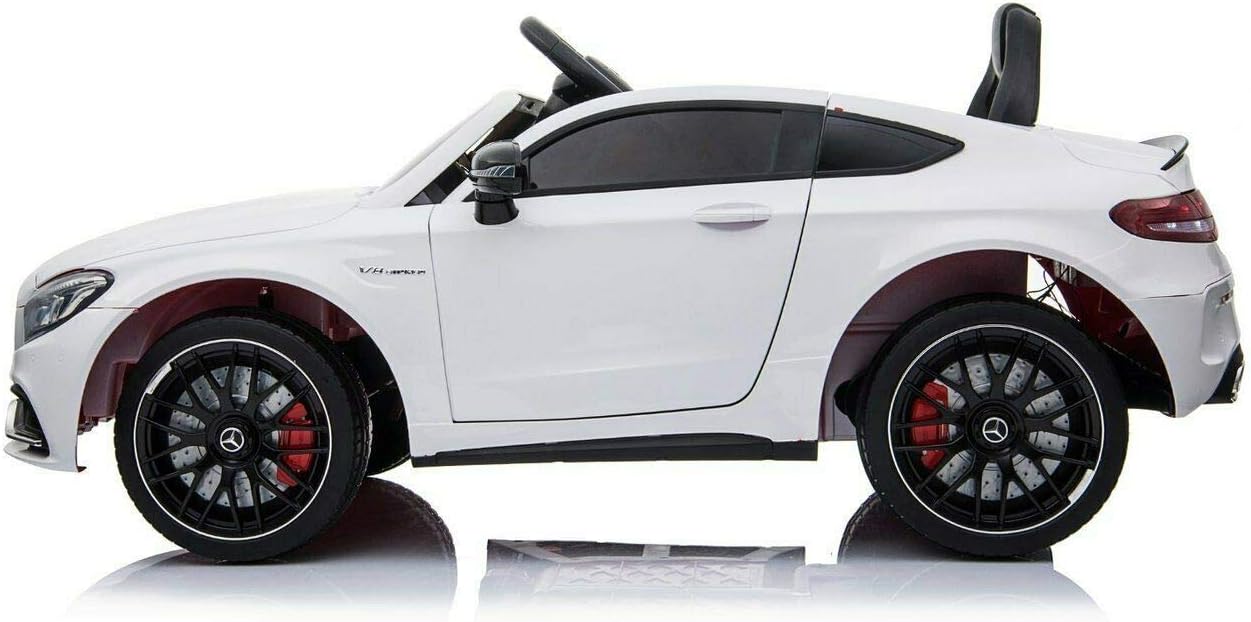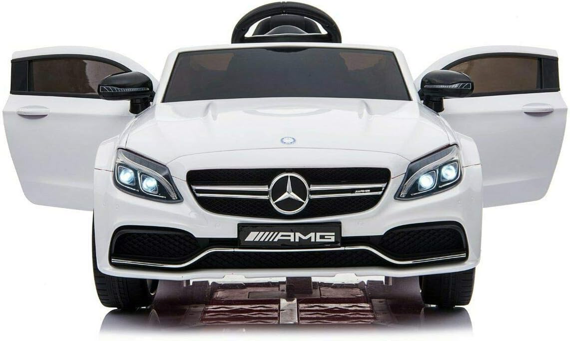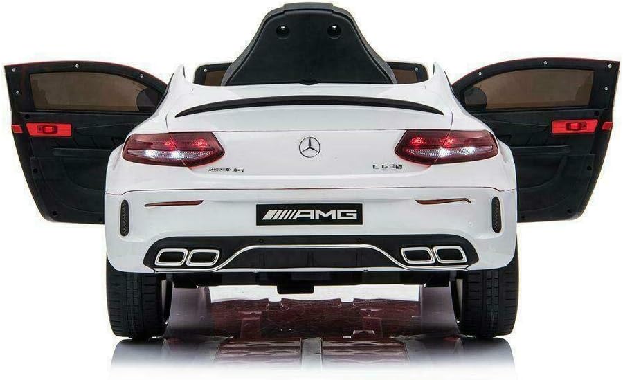 The Mercedes Benz C63 Ride-On Car 12V – White offers a realistic and safe driving experience for young children. Equipped with a 2.4G parental remote control, it allows adults to guide the car forward or backward and adjust between high and low speeds. Kids can enjoy music features, a one-button start system, and functional opening doors, while the built-in safety belt and sturdy design ensure a secure ride. Convenient puller wheels and a carrying handle make transport easy for parents.