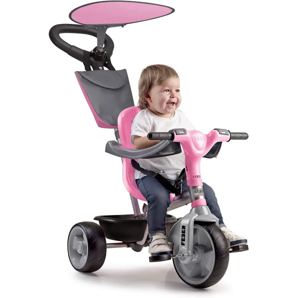 Baby plus music is an evolutionary tricycle, with a steerable system for boys and girls from 9 months to 3 years. A tricycle that includes a musical pack with lights and sounds and replaceable batteries! A perfect gift for any season! for when it is smaller, baby plus music rides will be more comfortable thanks to the included footrest for children; thanks to the belt and safety bar it will be safer and with the curved parasol it will be fully protected; and when they are ready months later, the pedals can be unlocked so they can pedal by themselves. They will have a great time! We think of you too! with easy driving system, metal structure for greater resistance and durability, rubber wheels for quieter rides, adjustable handle in 3 positions, bag and tipper; mounted tricycle measurements: 98.3 (length) 51.5 (width) 91.2 (height) cm; Weight: 8,20 kg