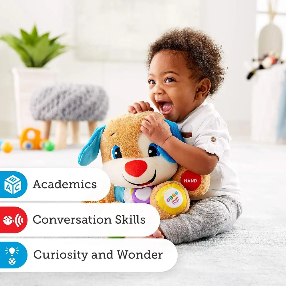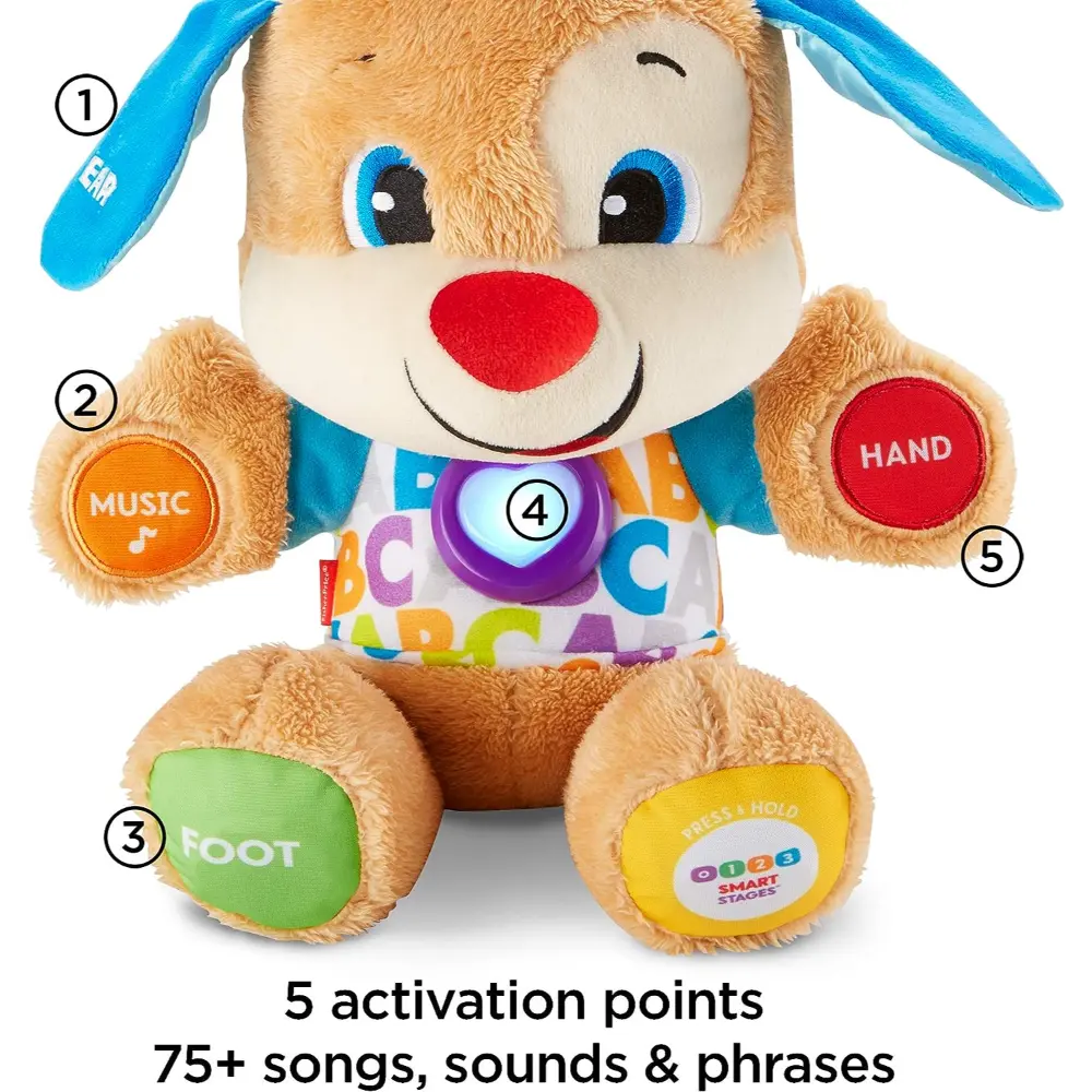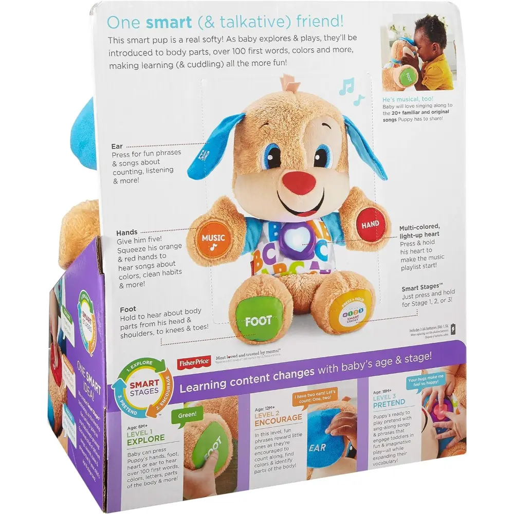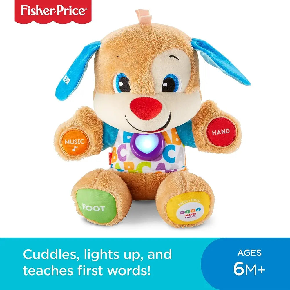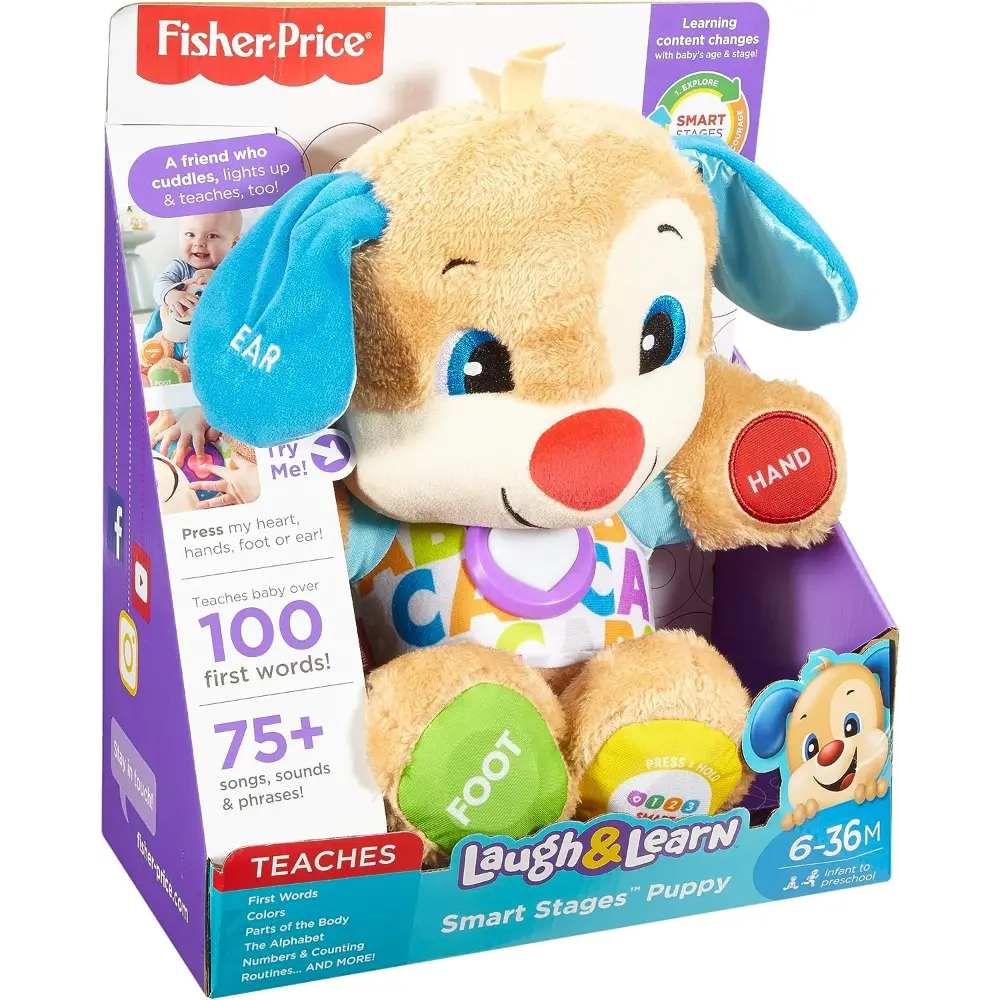 Meet your baby’s new best friend — the Fisher-Price Laugh & Learn Smart Stages Puppy! This cuddly plush toy teaches over 100 first words through 75+ songs, sounds, tunes, and phrases that respond to baby’s touch. With interactive hands, foot, ear, nose, and a light-up heart, this engaging puppy introduces body parts, colors, numbers, the alphabet, and more. Featuring 3 Smart Stages levels, it adapts to your child’s learning pace from 6 to 36 months, encouraging early development through fun and interactive play.