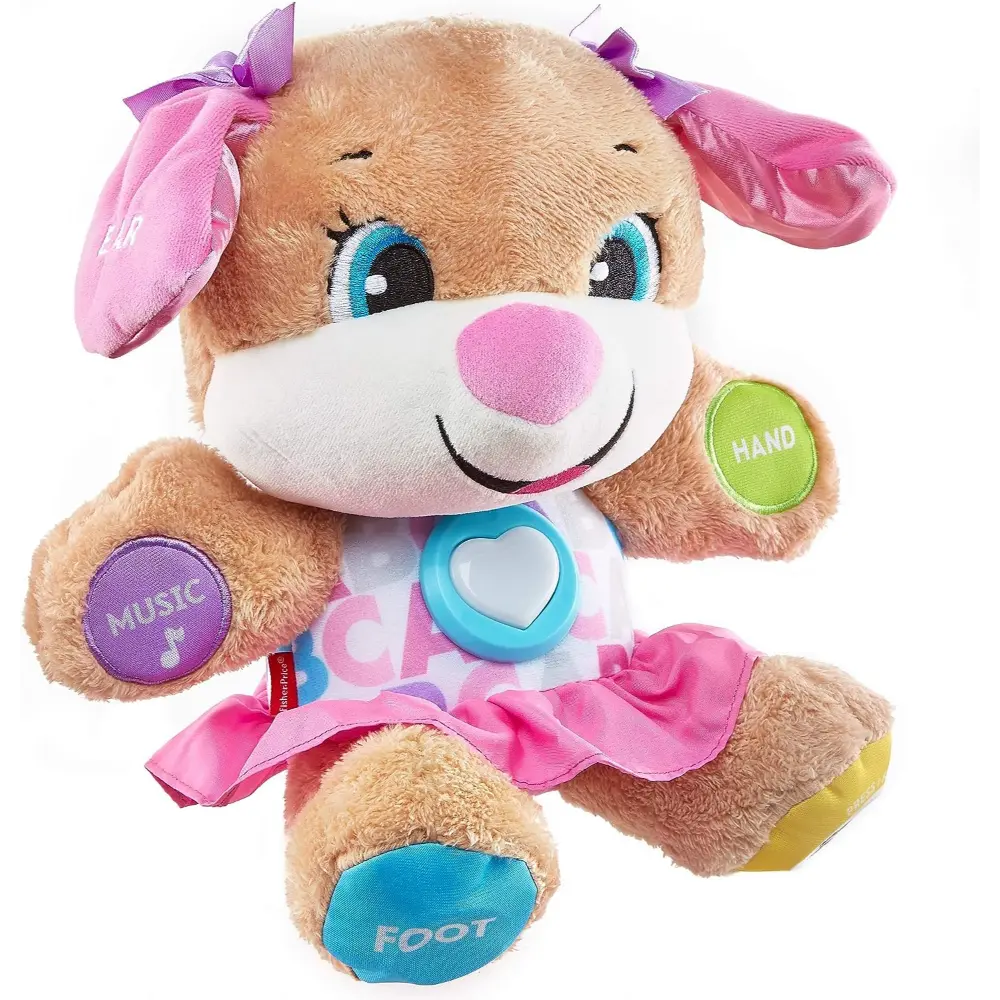 Meet your baby’s new best friend—the Fisher-Price Laugh & Learn Smart Stages Puppy! This soft, cuddly plush toy uses Smart Stages technology to grow with your child, teaching over 100 first words through 75+ songs, sounds, tunes, and phrases. Interactive hands, foot, ear, nose, and a light-up heart respond to baby’s touch, introducing parts of the body, shapes, counting, the alphabet, and more. Perfect for infants and toddlers ages 6 to 36 months, this engaging puppy supports early learning and sensory development in a fun and loving way.