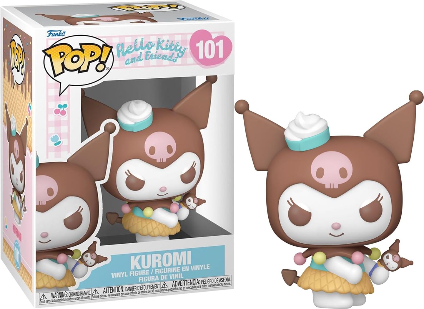 Sweeten your Sanrio collection with the Hello Kitty and Friends Kuromi with Ice Cream Funko Pop! Vinyl Figure. This adorable figure features Kuromi, known for her mischievous yet lovable punk-rock style, holding a delicious ice cream cone. Perfectly capturing Kuromi’s playful attitude, this collectible is a standout addition to any Hello Kitty and Friends lineup. Whether you’re a longtime Sanrio fan or a Funko Pop! enthusiast, this fun and sassy figure is sure to add personality and charm to your display.