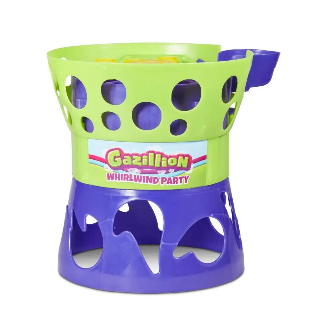 Create an instant bubble party with the Gazillion Bubbles Whirlwind Party Machine! Perfect for birthdays, graduations, weddings, and more, this powerful bubble machine produces up to 7,500 bubbles per minute at the push of a button. With no pump and no wait time, the party starts instantly. Simply pour the included 16 oz. bottle of non-toxic Gazillion Bubbles Solution into the spout, attach the auto-feed cap, insert it, and watch the bubbles fill the air. Requires 8 AA batteries (not included). Suitable for children aged 3 years and up.