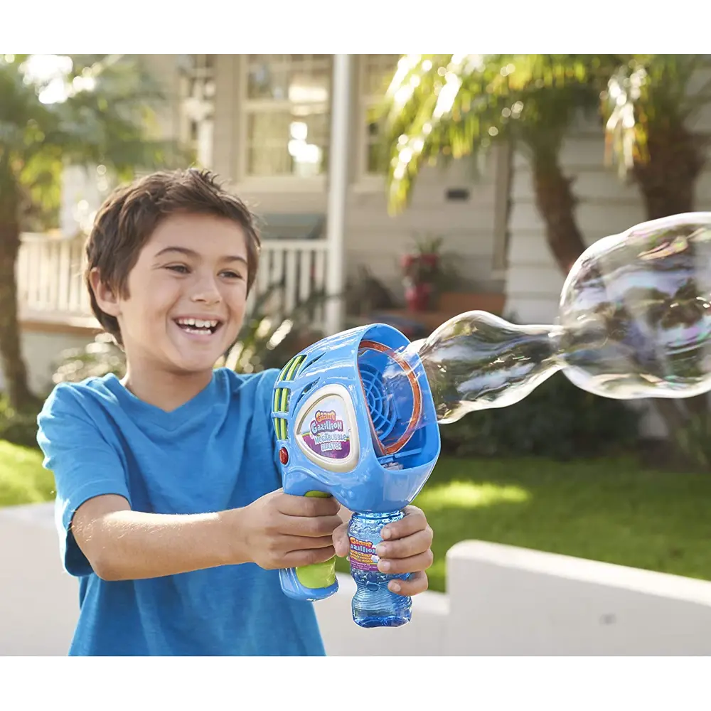 - Includes Mega Blaster and Gazillion bubble solution for instant fun.
