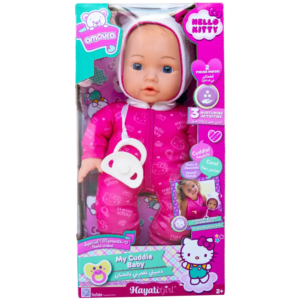Experience the magic of nurturing play with the Amoura & Hello Kitty My Cuddle Baby Doll. This cuddly doll features a soft-touch design and is dressed in an adorable Hello Kitty-themed outfit, perfect for creating special moments with your little one. Designed to encourage imaginative and interactive play, this doll helps develop important social and motor skills while inspiring creativity and caring behaviors.