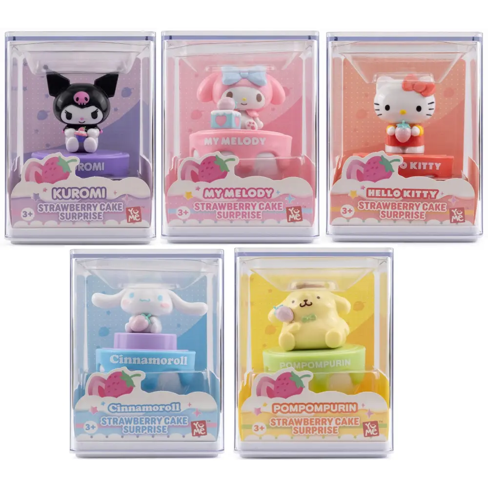 Celebrate 50 years of cuteness with the YuMe Hello Kitty and Friends 50th Anniversary Capsules! These charming 8cm figures come individually encased in clear acrylic display boxes, perfect for showcasing your collection safely and stylishly. Each figure includes a matching cake accessory that opens to reveal a tiny hidden figure inside, adding a fun surprise to every unboxing. Featuring five beloved characters—Hello Kitty, Melody, Pompompurin, Kuromi, and Cinnamoroll—this cake-themed collection is perfect for fans and collectors alike. Display them proudly on your desk, shelf, or bedside table and enjoy a sugar rush of sweetness every day. Recommended for ages 3 and up.