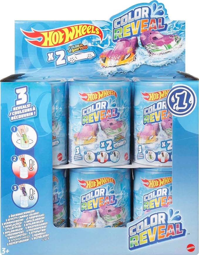 Take Hot Wheels play to the next level with Color Reveal cars, designed for action-packed fun on any Hot Wheels track! Kids can push, race, and explore unlimited storytelling possibilities while discovering the car’s hidden design with dynamic color-changing action. Perfect for imaginative play, these track-ready vehicles inspire creativity and endless push-around adventures. Colors and decorations may vary.