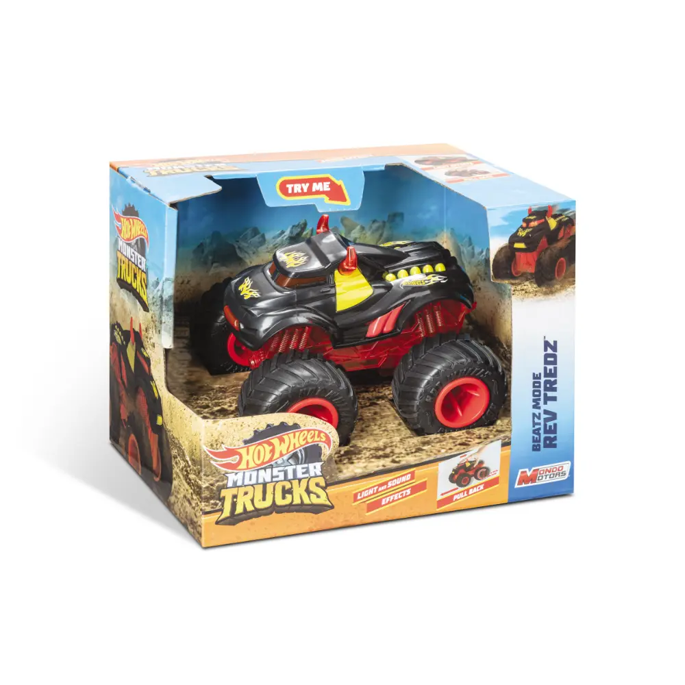Rev up the excitement with the Hot Wheels Monster Trucks Beatz Mode Yellow Bone Shaker! This pull-back monster truck moves on its own, launching forward at high speed with lights and sound effects for an electrifying play experience. Featuring iconic Hot Wheels paintwork and a compact, portable design, it’s perfect for kids aged 3 and up to race and perform stunts anywhere. Durable and fun, the Yellow Bone Shaker brings endless Monster Truck action to every play session.
