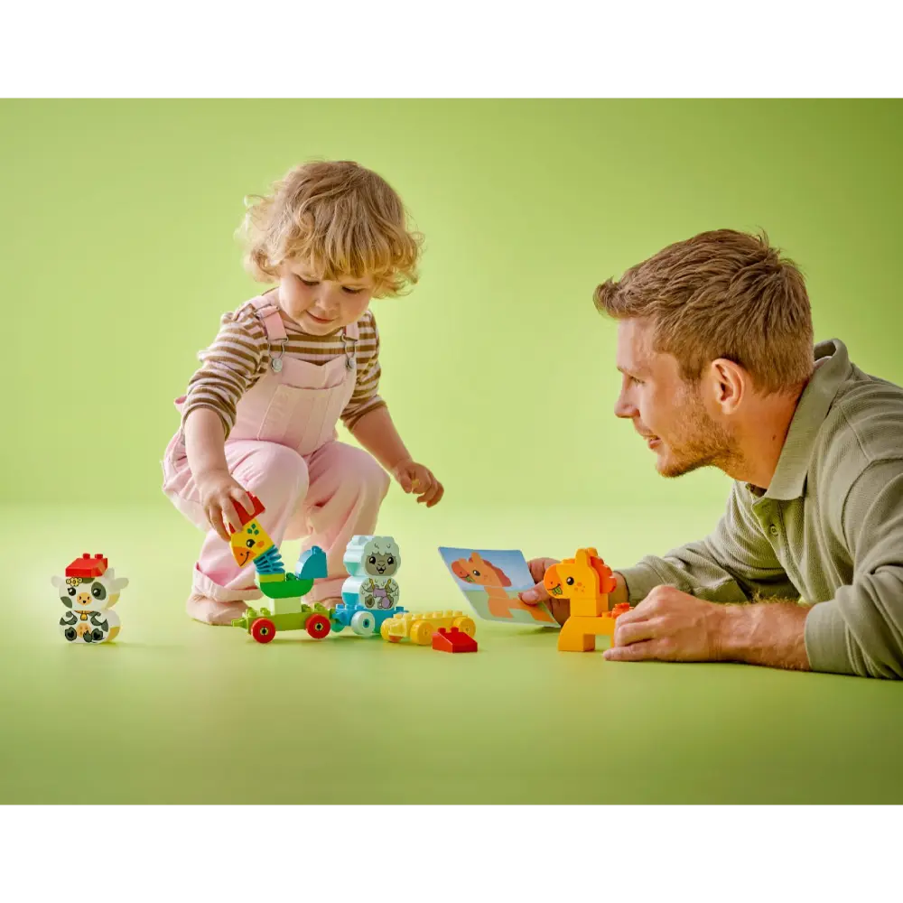 Introduce little ones to creative building and colour-matching fun with the LEGO® DUPLO® My First Animal Train (10412). Designed for toddlers aged 18 months and up, this set includes four adorable buildable animals — a rooster, horse, lamb and cow — that can be matched to the coloured train carriages. As children follow the picture cards to build each animal, they develop problem-solving and fine motor skills, while extra bricks encourage imaginative creations of their own. With playful features like a flexible rooster neck and easy-connect carriages, this set supports open-ended fun and early learning through hands-on play.