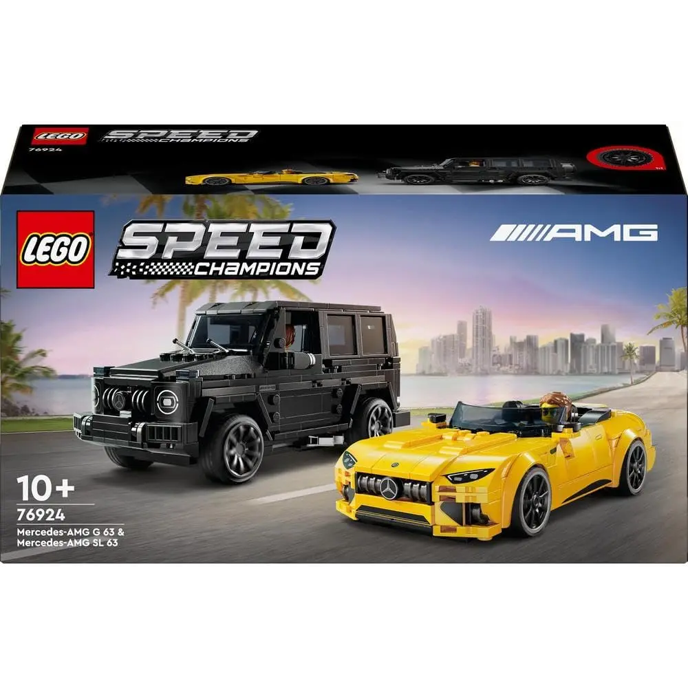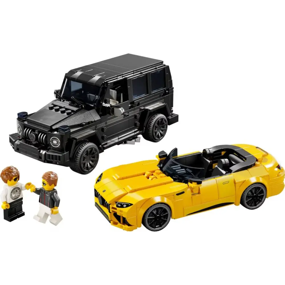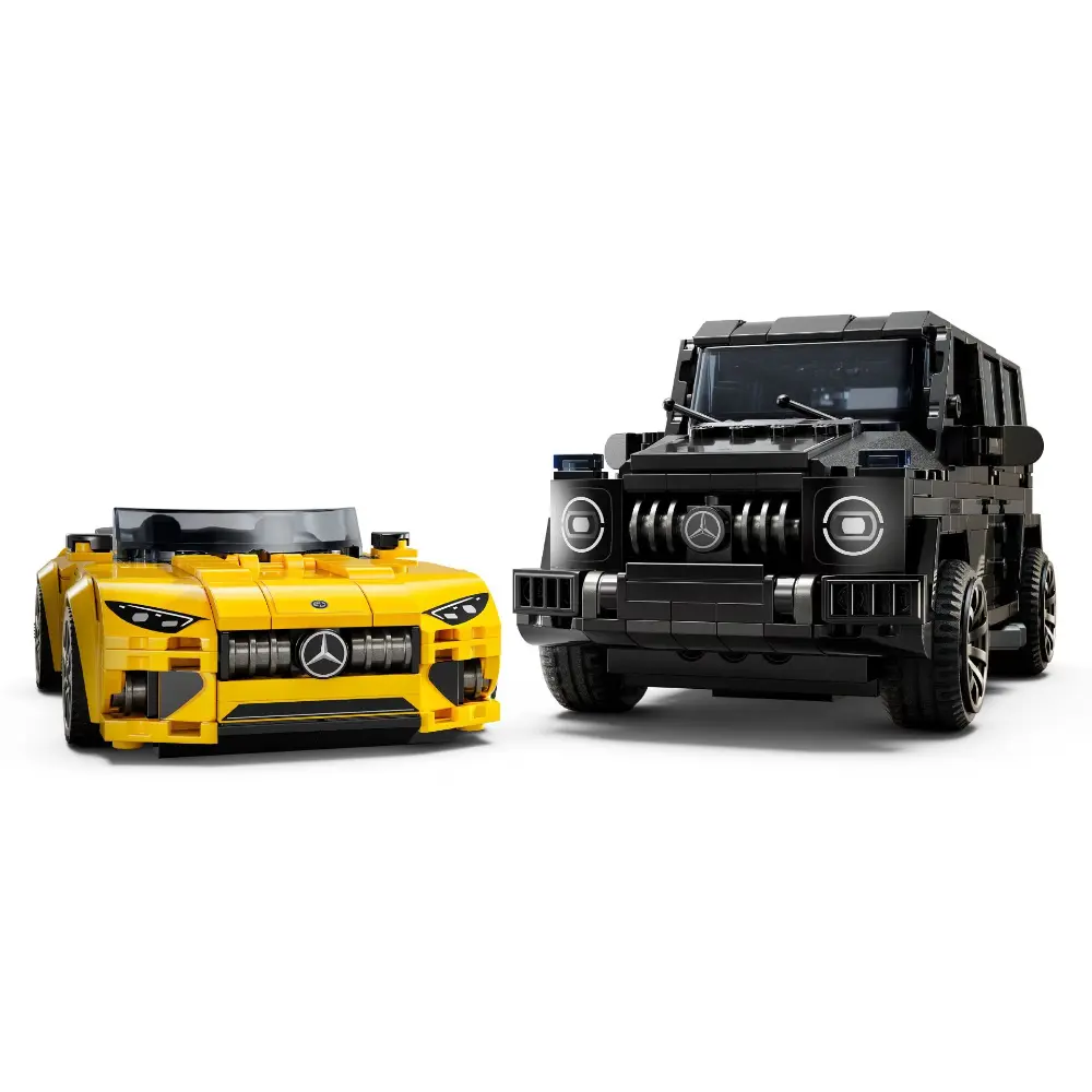 Boys and girls aged 10+ can enjoy high-speed fun with the LEGO® Speed Champions Mercedes Double Pack (76924), featuring the AMG G 63 and AMG SL 63. This set includes two stylish buildable car models, perfect for kids, Mercedes fans, and adult collectors to build, display, and race. The black AMG G 63 SUV and yellow AMG SL 63 convertible roadster feature authentic details from their real-life counterparts, including front grilles, hoods, interiors, and signature Mercedes livery. Each car comes with a driver minifigure for action-packed racing fun. LEGO Speed Champions sets let fans recreate iconic vehicles using printed instructions or the intuitive LEGO Builder app for a hands-on building adventure.