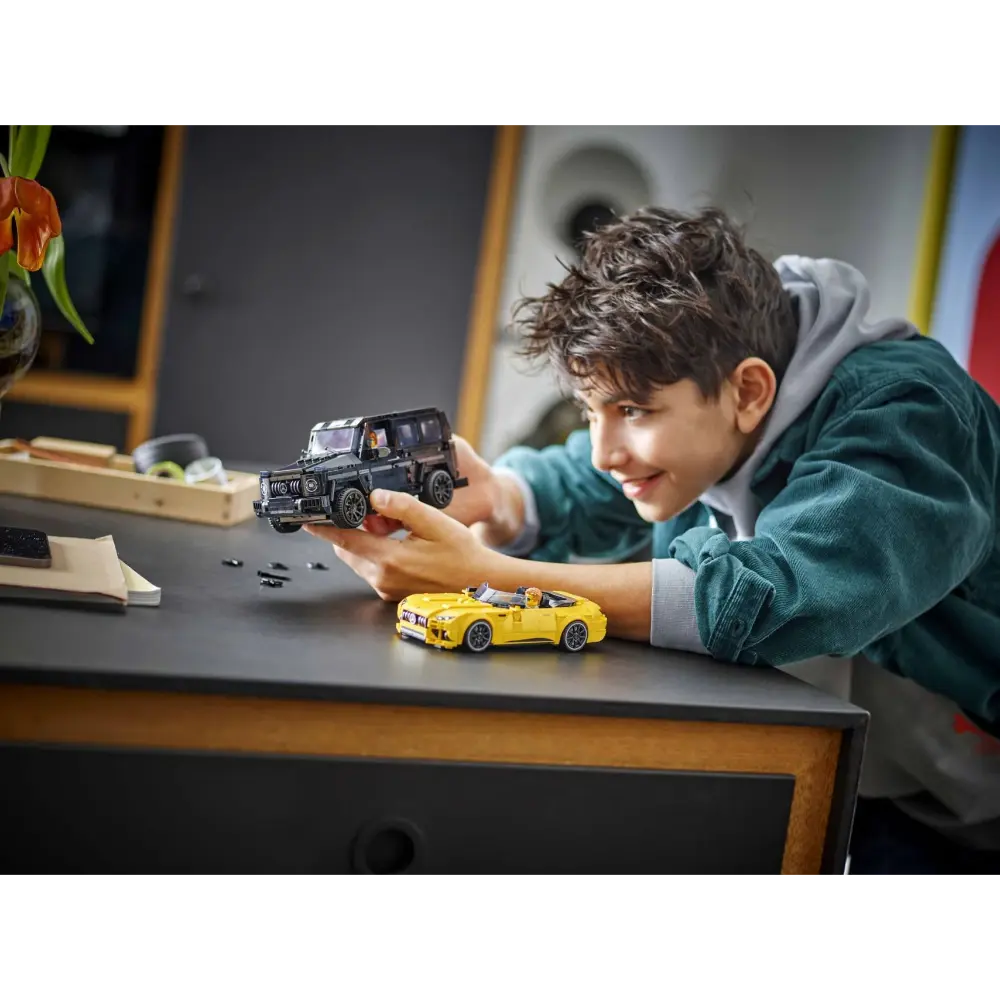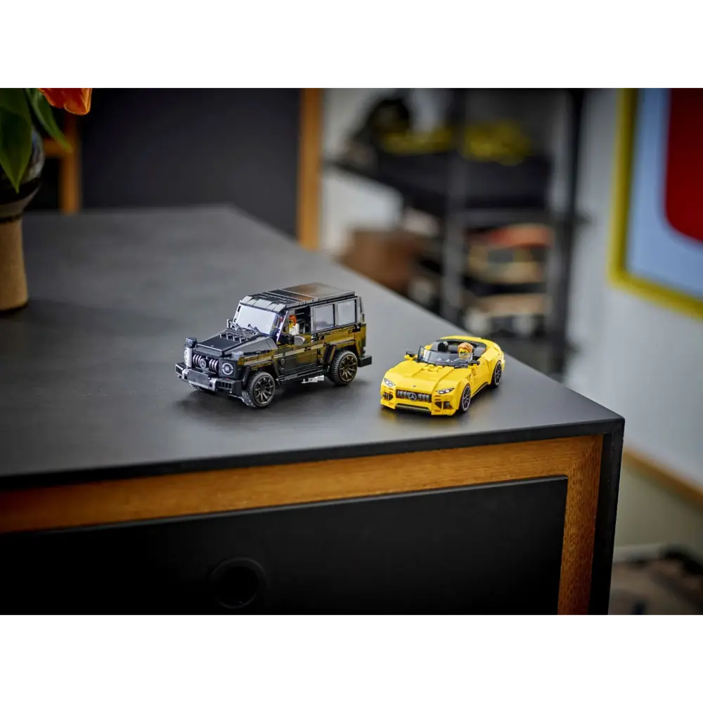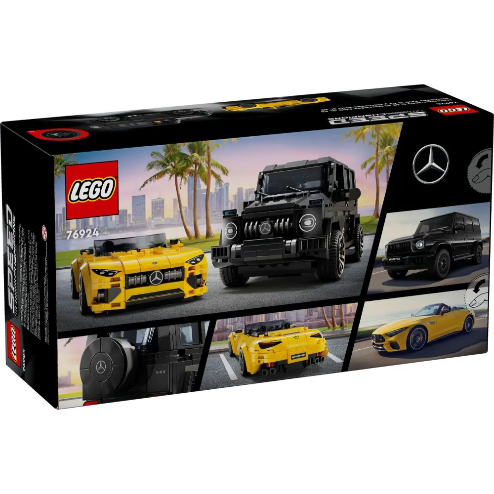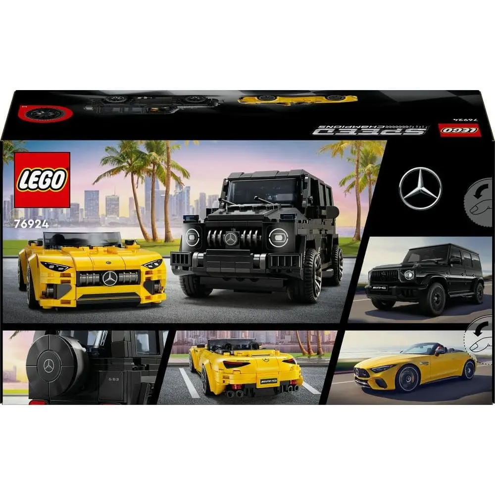 Boys and girls aged 10+ can enjoy high-speed fun with the LEGO® Speed Champions Mercedes Double Pack (76924), featuring the AMG G 63 and AMG SL 63. This set includes two stylish buildable car models, perfect for kids, Mercedes fans, and adult collectors to build, display, and race. The black AMG G 63 SUV and yellow AMG SL 63 convertible roadster feature authentic details from their real-life counterparts, including front grilles, hoods, interiors, and signature Mercedes livery. Each car comes with a driver minifigure for action-packed racing fun. LEGO Speed Champions sets let fans recreate iconic vehicles using printed instructions or the intuitive LEGO Builder app for a hands-on building adventure.
